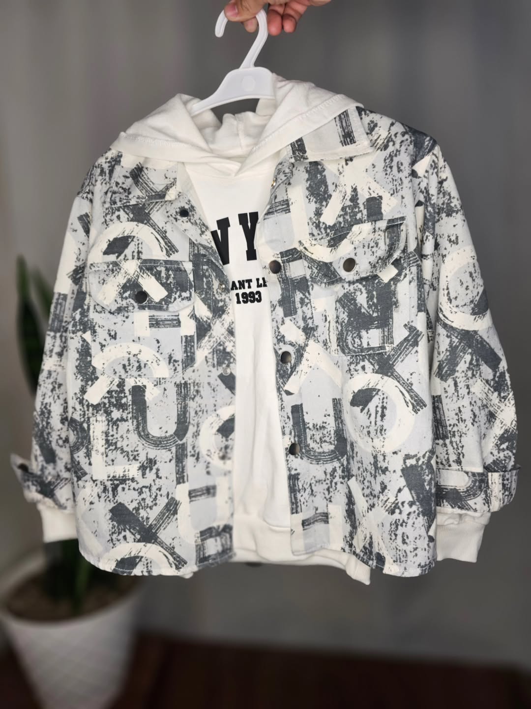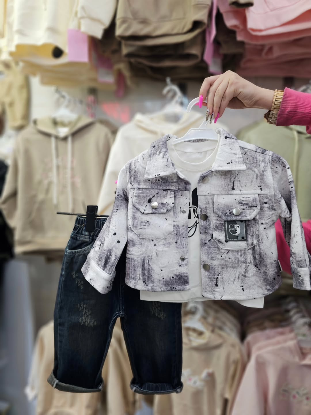 سه تیکه اسپرت کتان طرحدار رنگ طوسی سایز۱تا۹سال