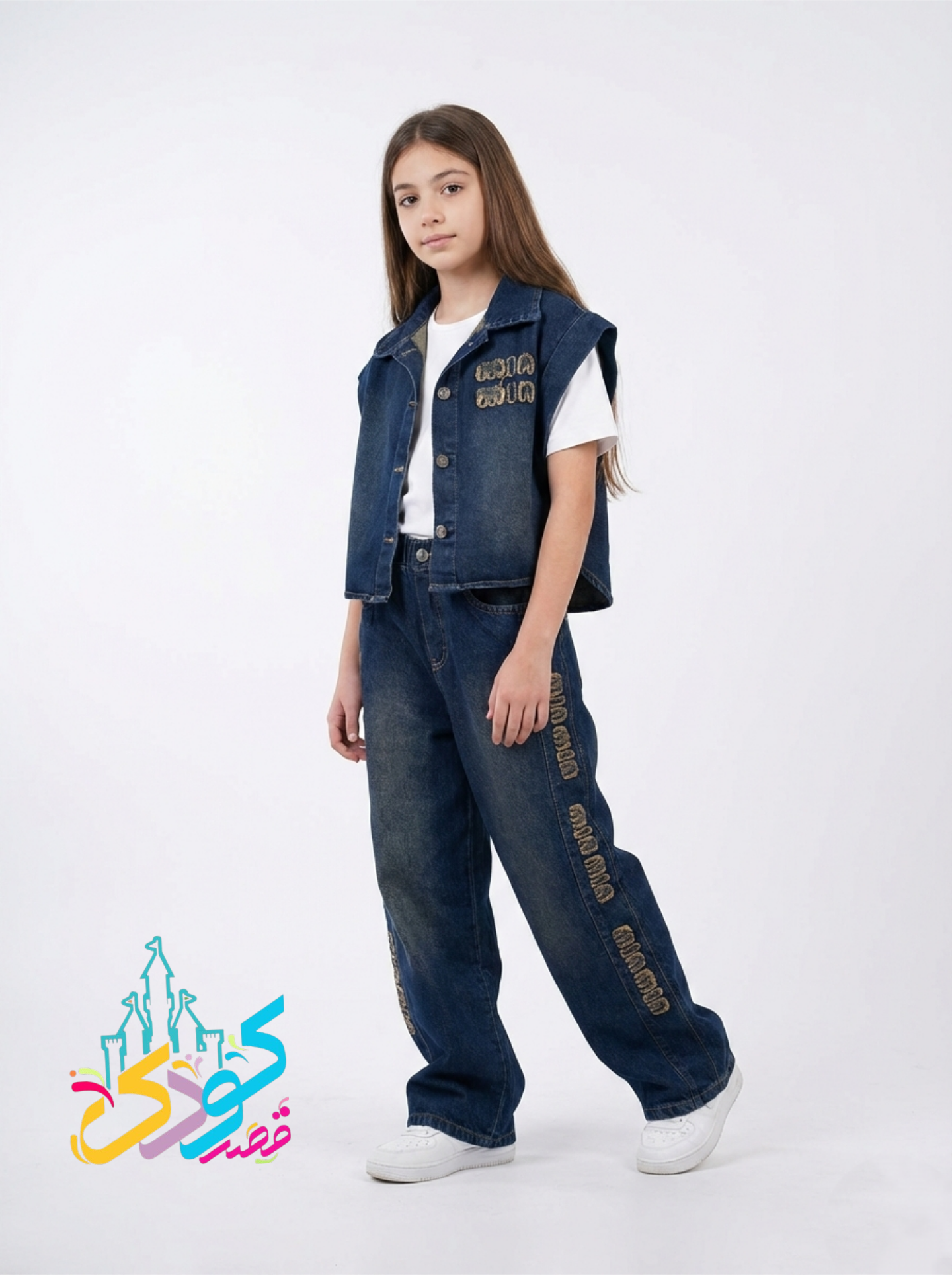 ست وست لی با شلوار بگ مدل miu miu پارچه ترک سایز ۷تا۱۵ سال