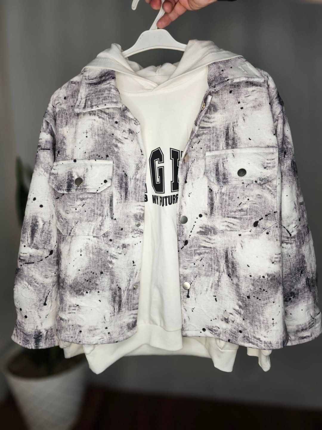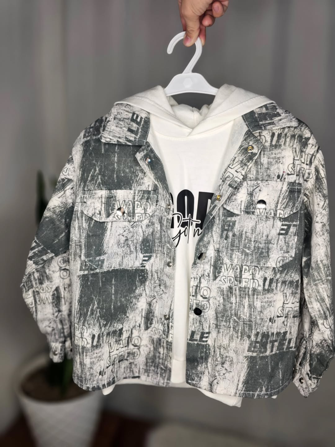 دو تیکه اسپرت کت کتان با هودی نخ پنبه سایز ۷تا۱۲سال