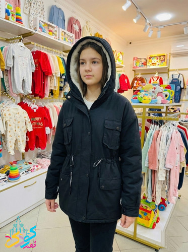 کاپشن دخترانه کتان داخل خز سایز ۳۴ تا۳۶ ،۵ تا ۹ سال
