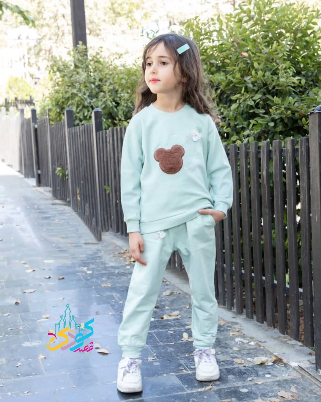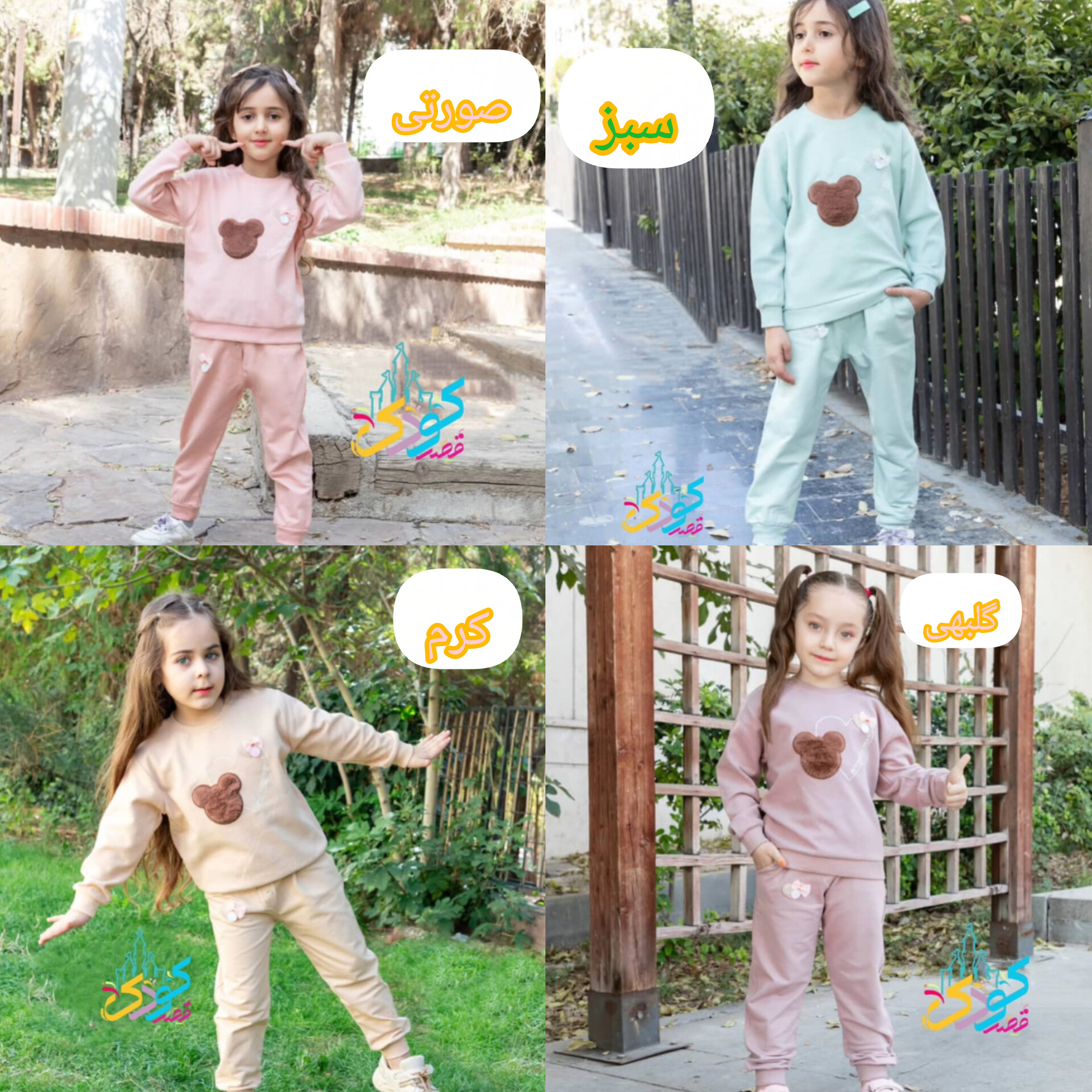 بلوز و شلوار دخترانه با طراحی خرسی و در چهار رنگ زیبا.