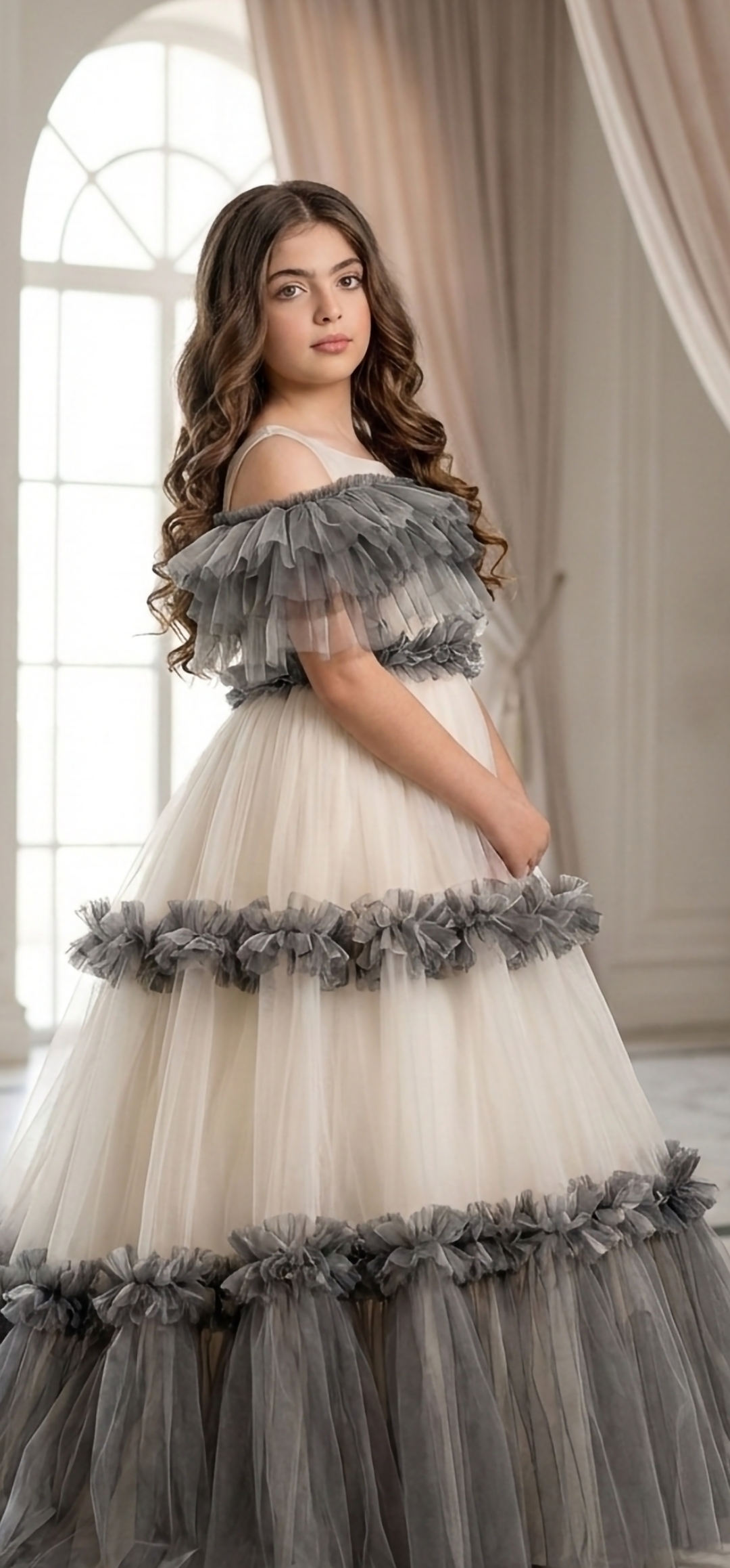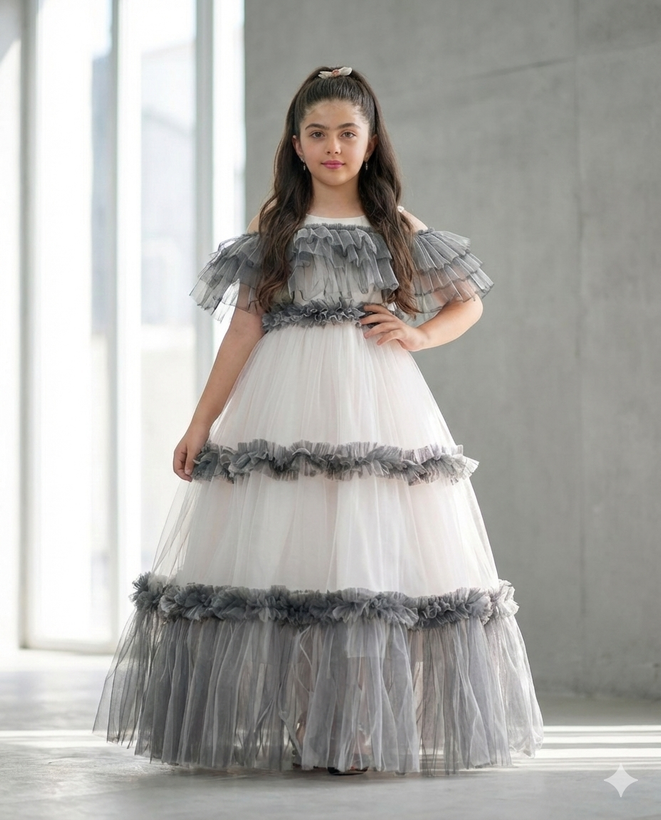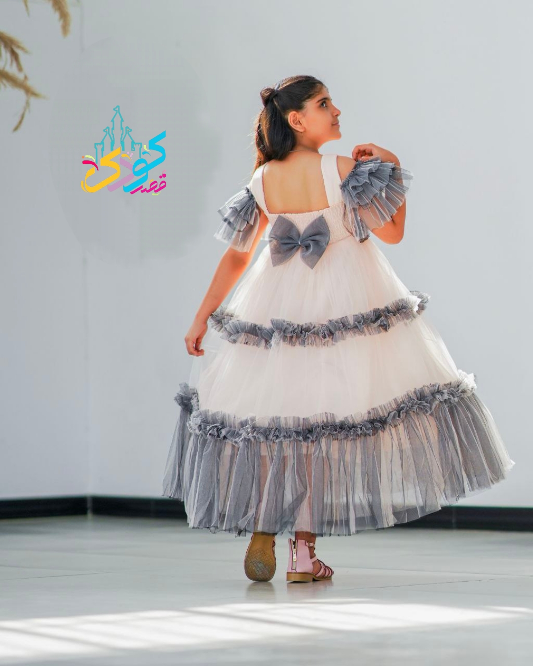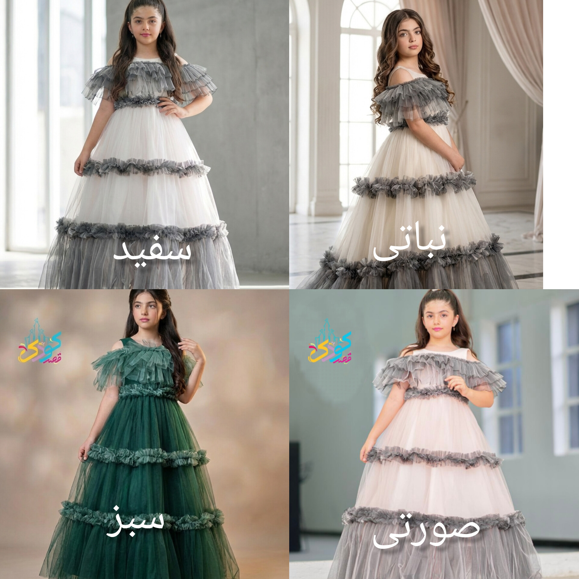 لباس عروس دخترانه تور پشت کش بخاطر اینکه راحت تن بچه بشه و دارای سیم برای پفی و پر دیده شدن و تنخور عالی مناسب دختران ناز 😍😍