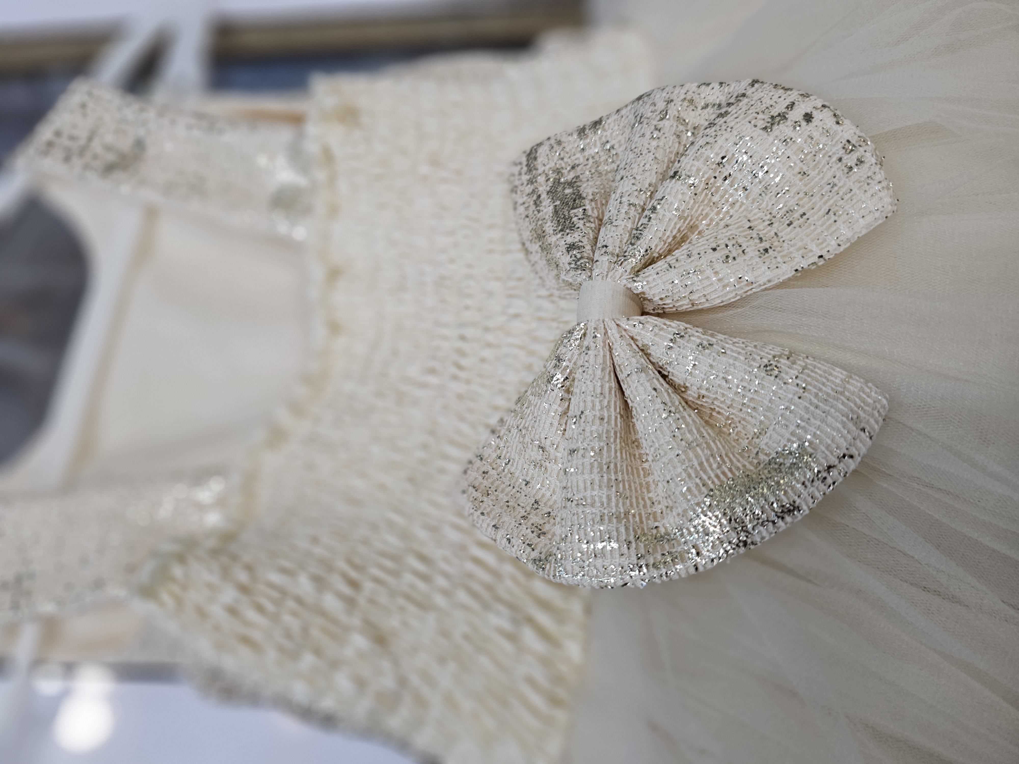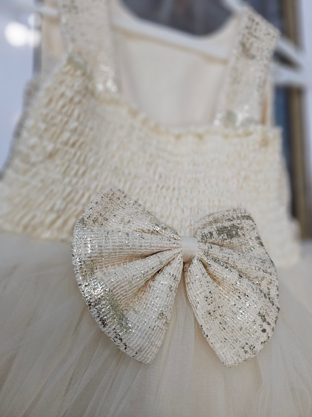 لباس مجلسی تور پاپیون دار پشت کش برای اینکه راحت تن بچه بشه و دارای سیم زیر آستر برای پف و پر دیده شدن لباس