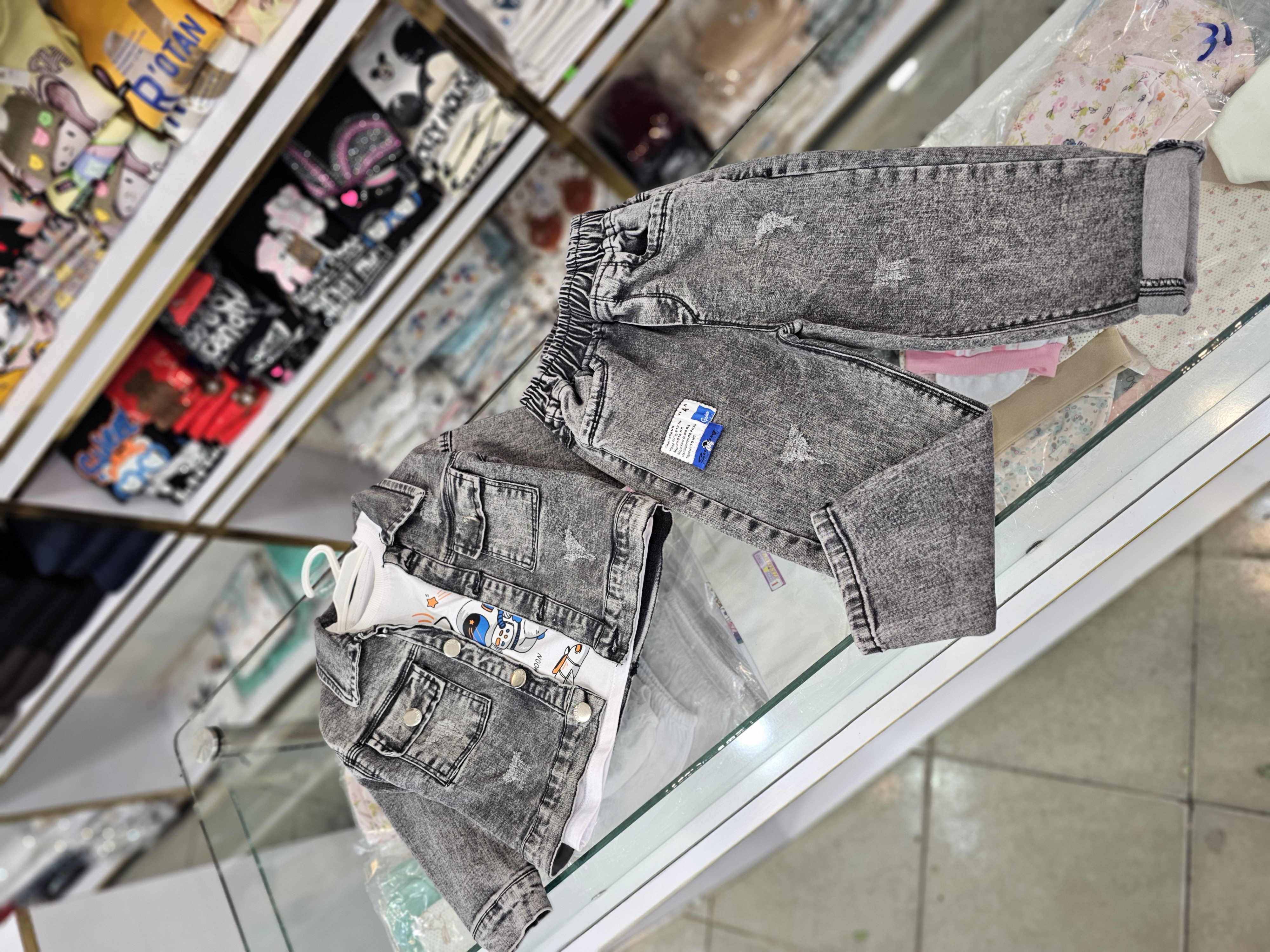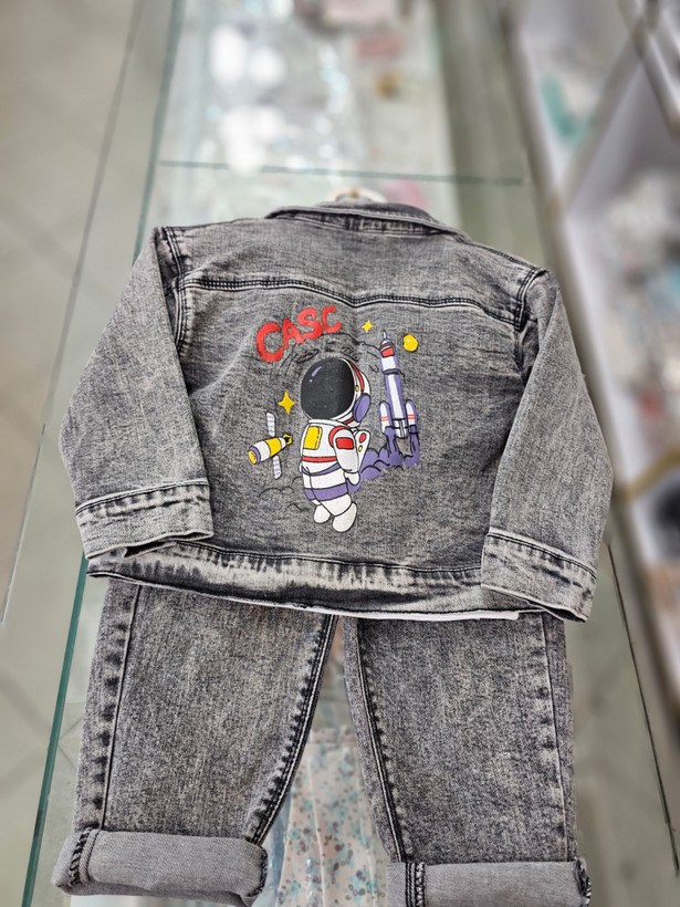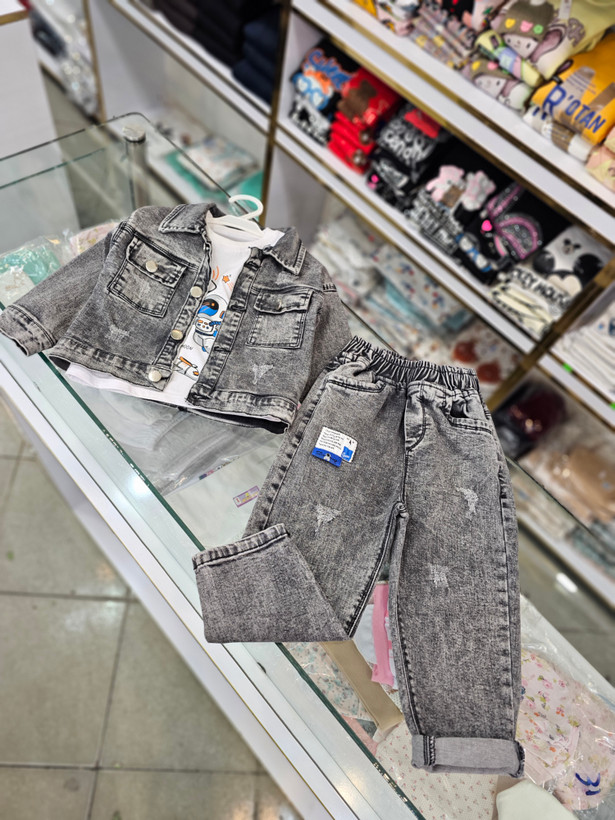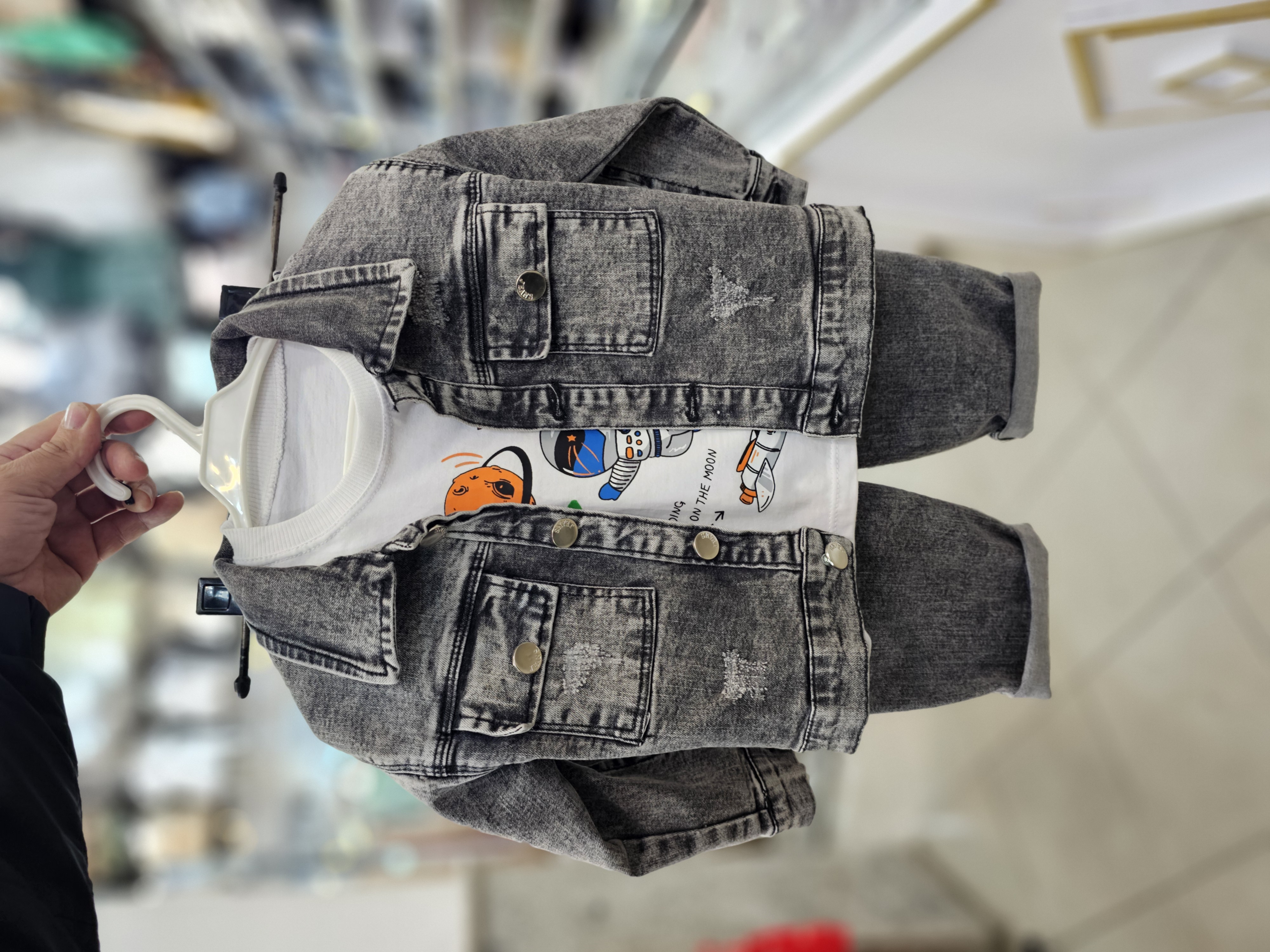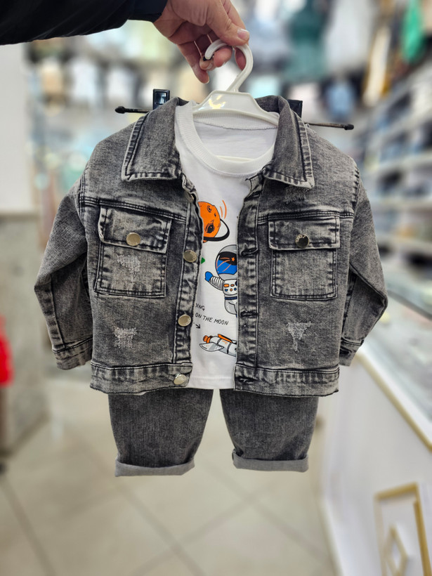 سه تیکه لی آدم مدل آدم فضایی که شامل کت لی تمام پنبه تیشرت نخی زیر و شلوار مام تمام پنبه کشی که راحت تن بچه میشه