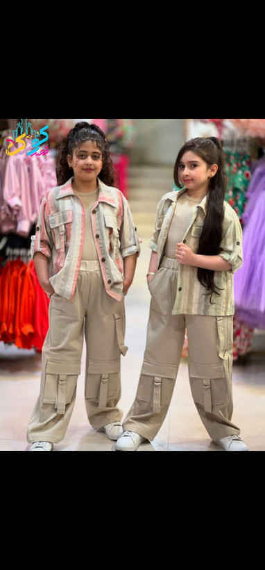 دو تیکه کنفی با شلوار کتان سایز ۷ تا ۹ سال