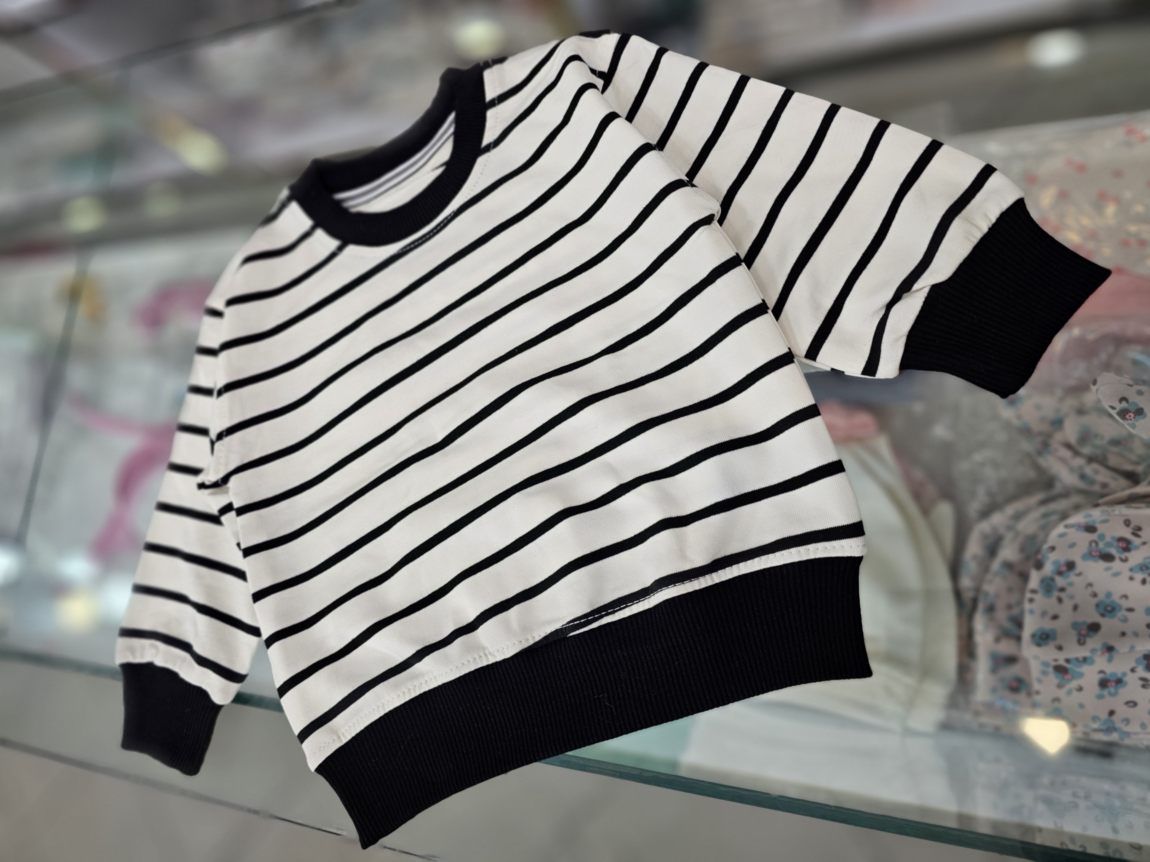 بلوز راه راه پارچه پنبه لاكرا کشی اسپرت مناسب فصل بهار کیفیت عالى درجه یک سایز نوزاد تا ۳ سال