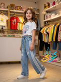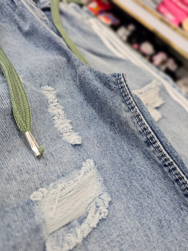 شلوار لی بغل نواری شافل بگ اسپرت مناسب دختر و پسر، دارای زانفیکس که زیر زاپ معلوم نشه