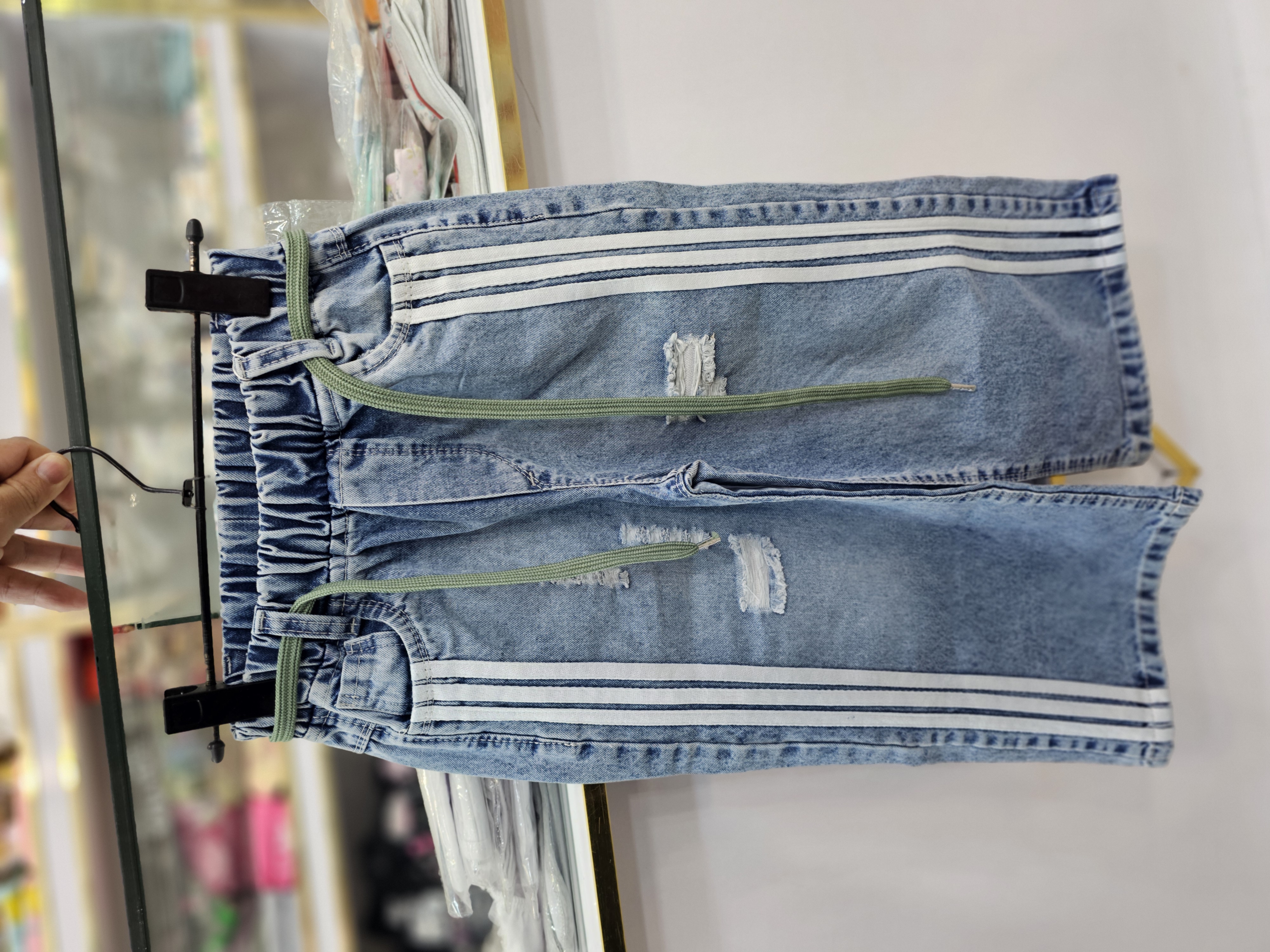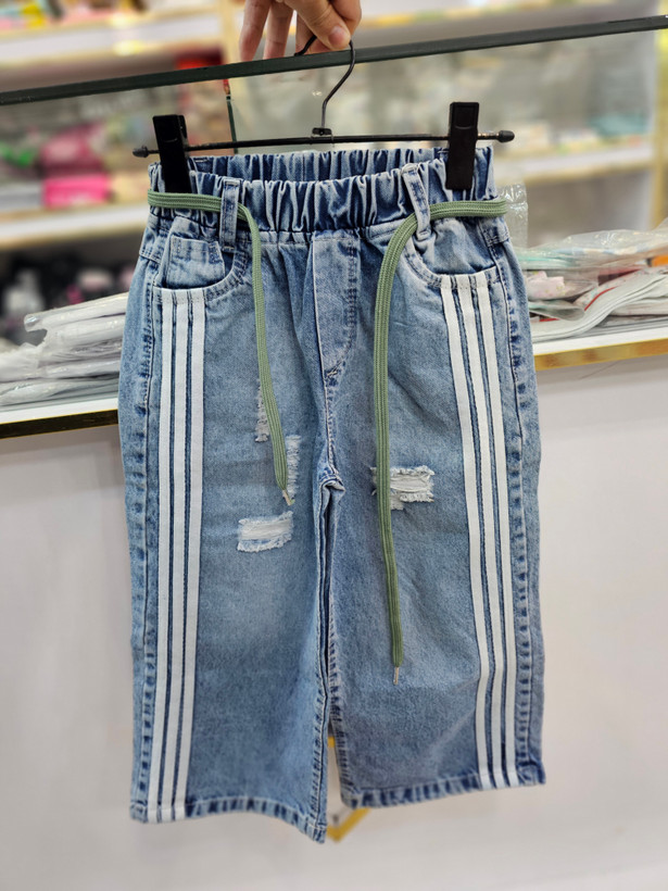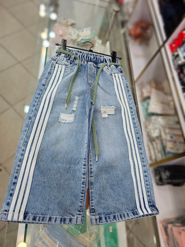 شلوار لی شافل بگ بغل نواری سایز۷۵ تا۱۰۰ مناسب ۶ تا۱۲ سال