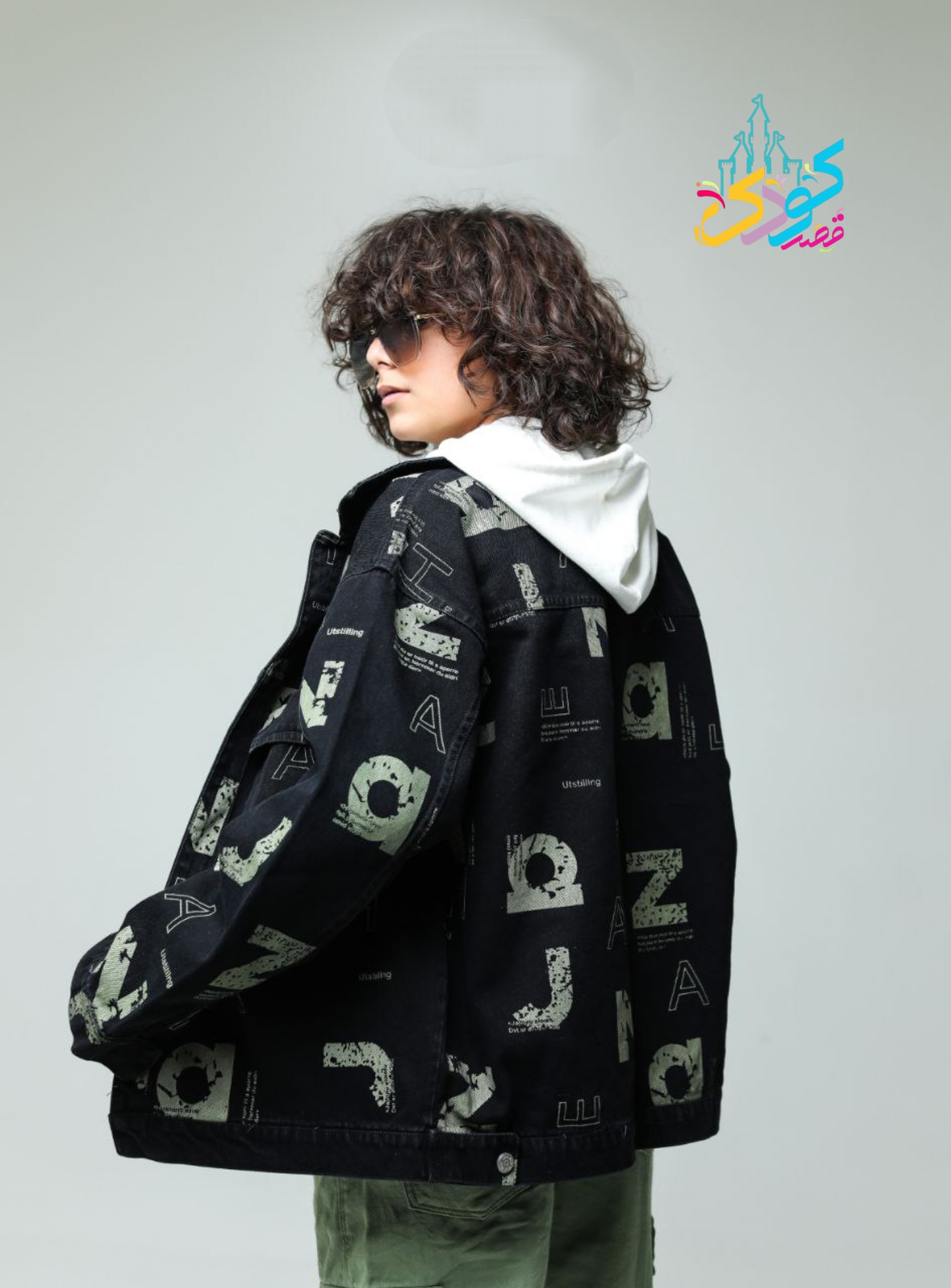 کت لی طرح دار با نوشته های حروفی با هودی آستین بلند پنبه مناسب ۷ تا ۱۳ سال