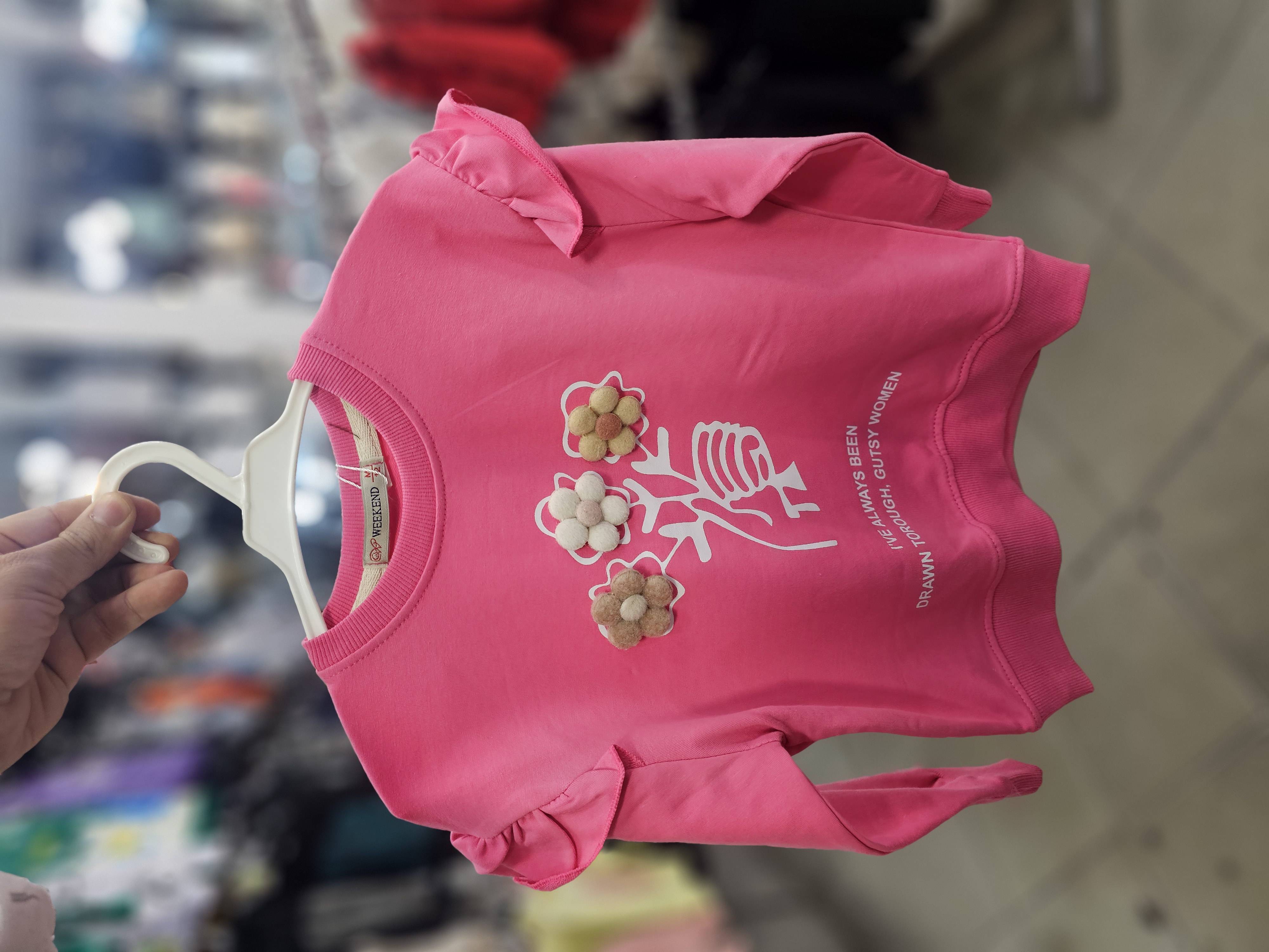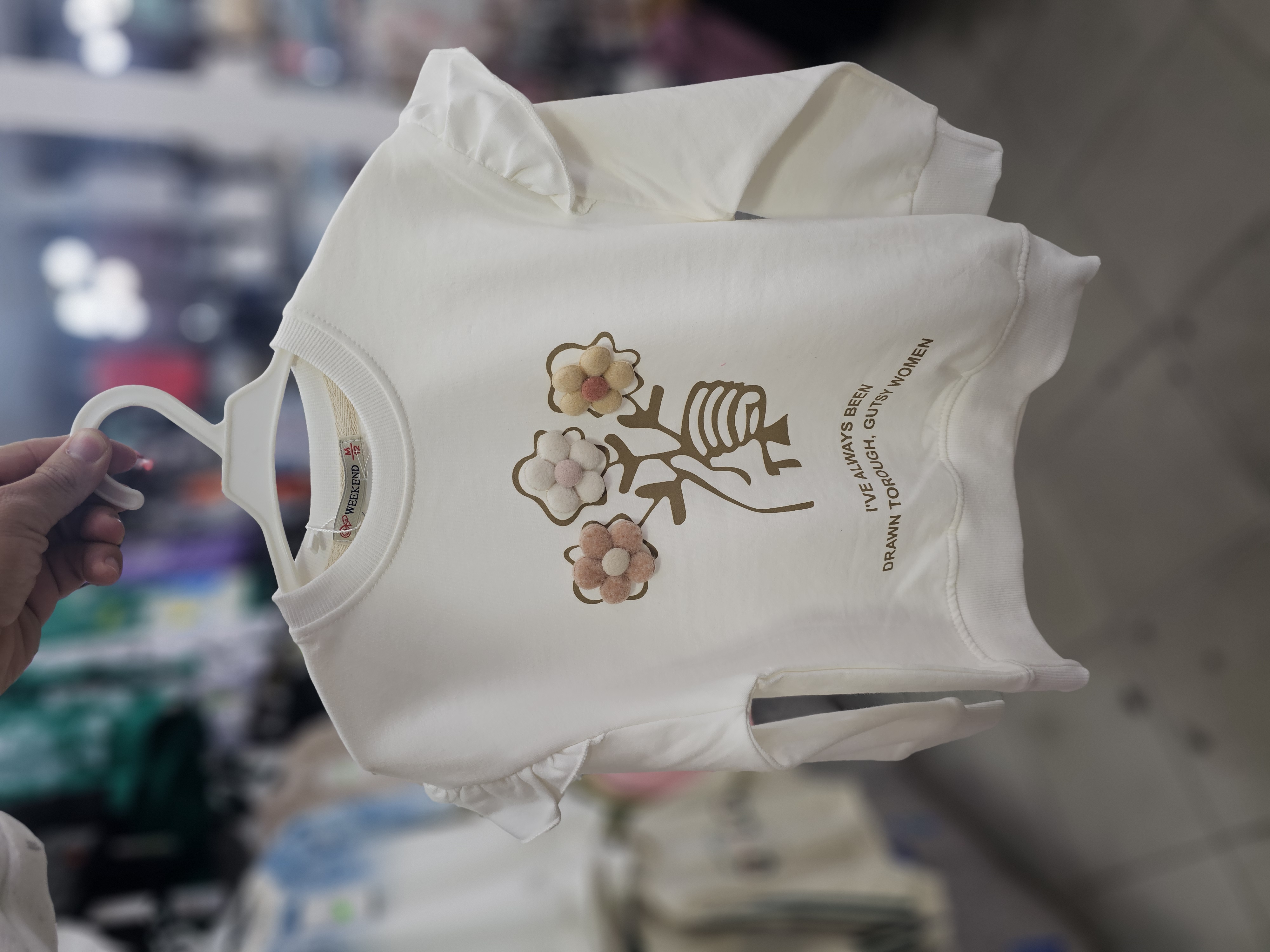 بلوز دخترانه سه گل دورس دو‌نخ پنبه لاکرا سایز ۴۰ تا ۶۰