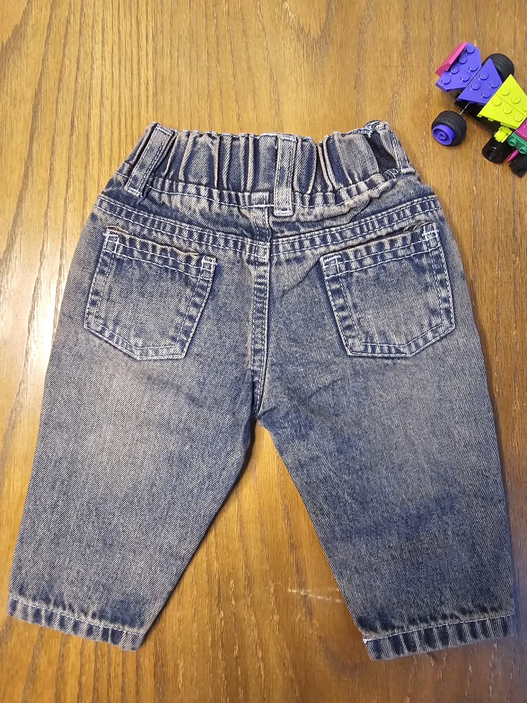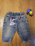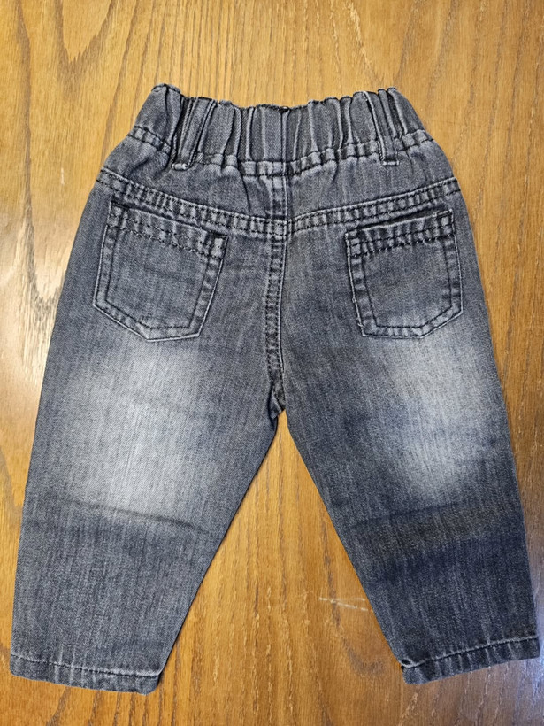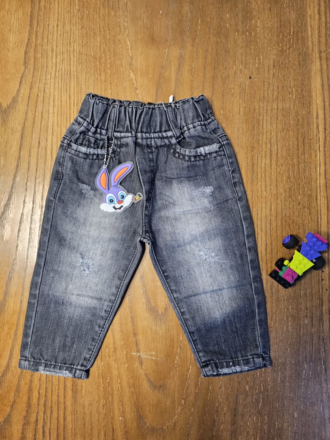 شلوار لی مام نقلی با دورنگ ذغالی و آبی کثیف مناسب برای کودکان تا ۲۴ ماه, جنس پارچه لی پنبه نرم و کمر کش برای راحتی بچه