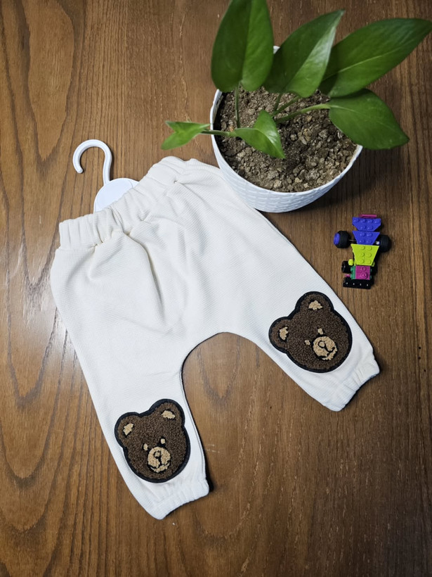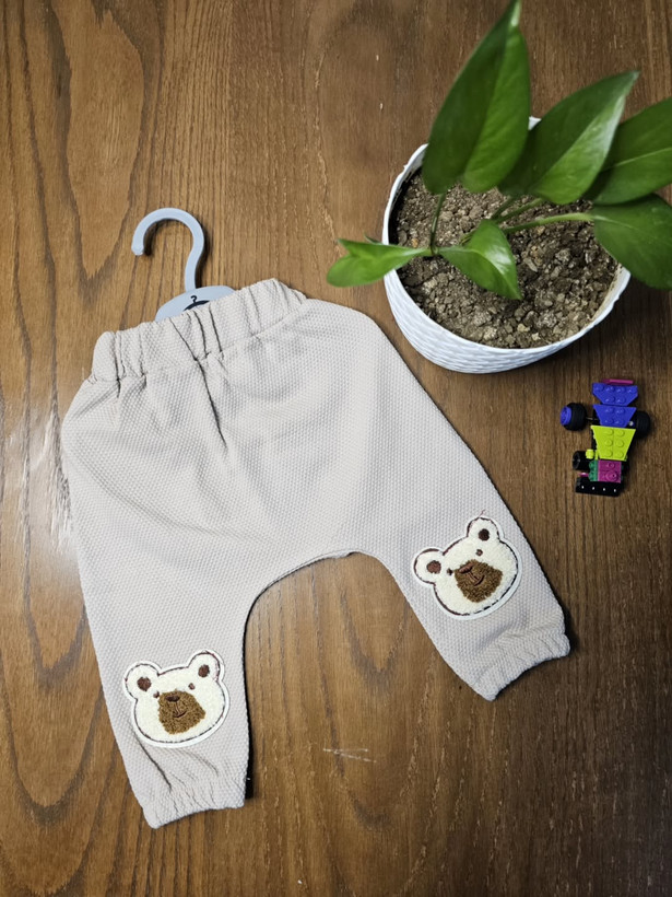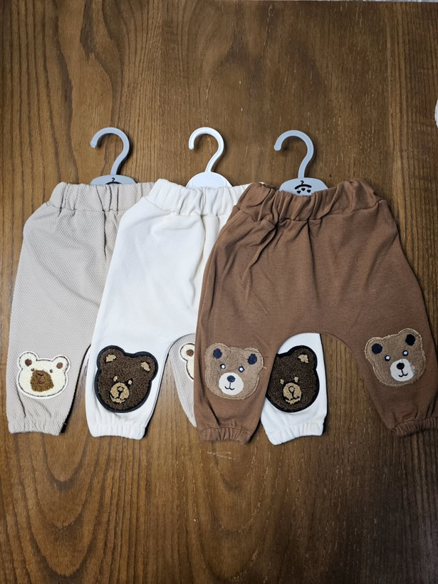 شلوار خانگی نوزادی پارچه کبریتی سایز ۰تا۱۲ماه سه رنگ کرم شیری و نسکافهای