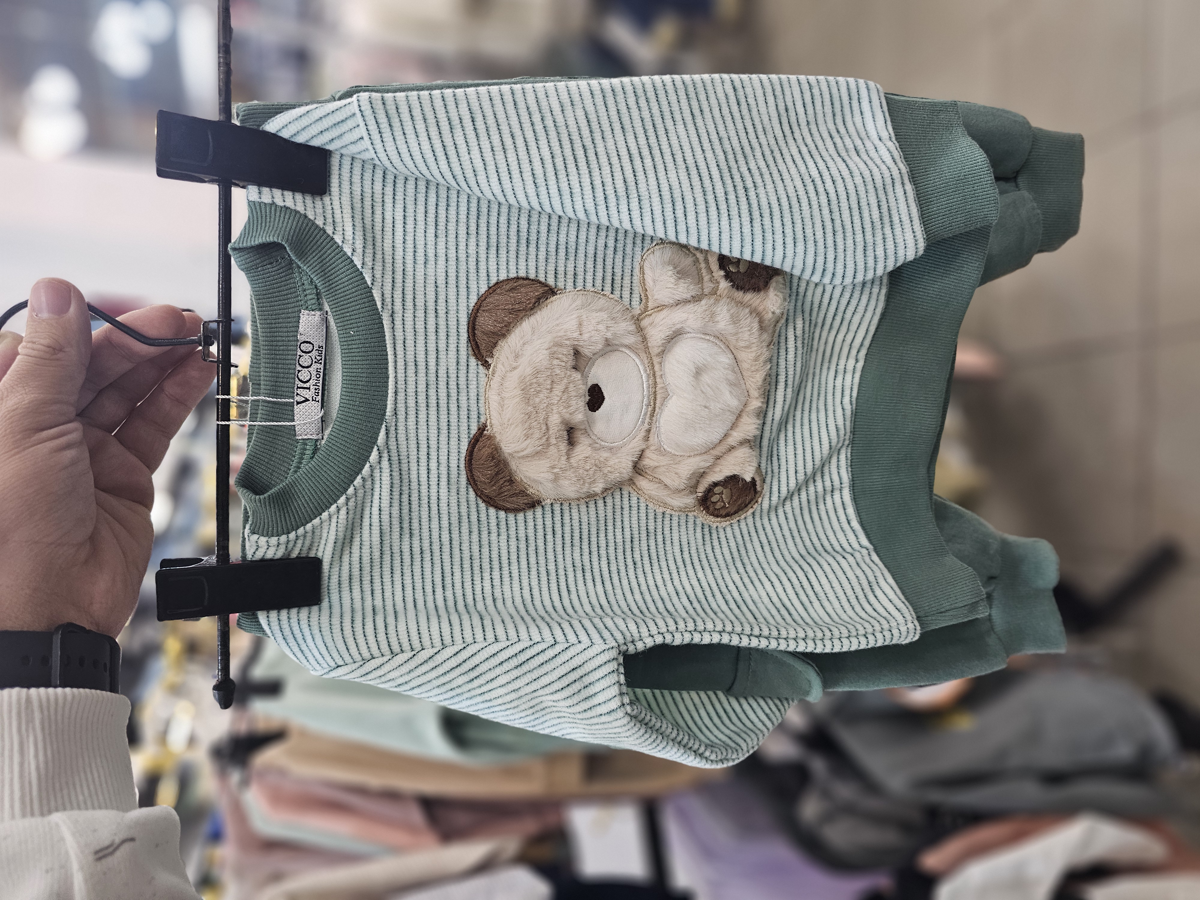 بلوز شلوار طرح خرس جنس سلانیکی درجه یک سایز ۶ سال