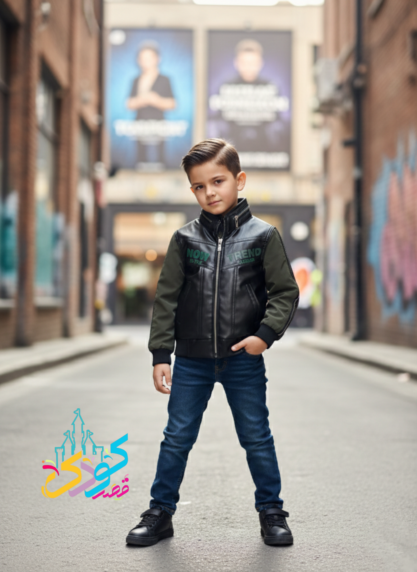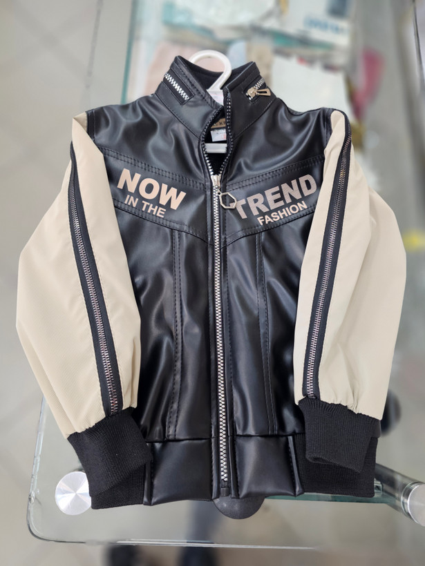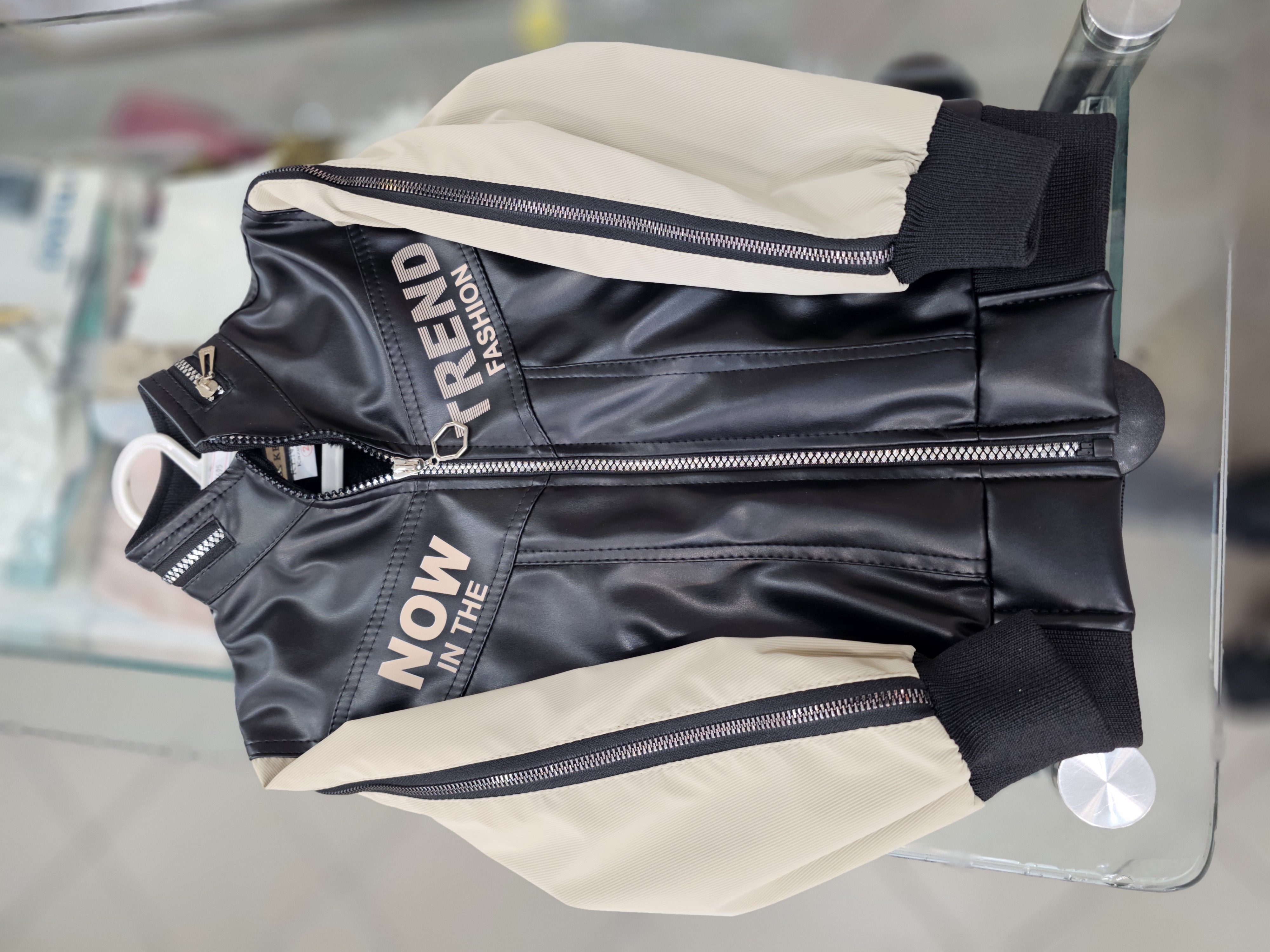 کت چرم اسپرت آستین زیپ دو رنگ سایز ۳ تا ۱۲ سال