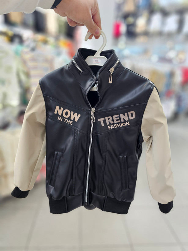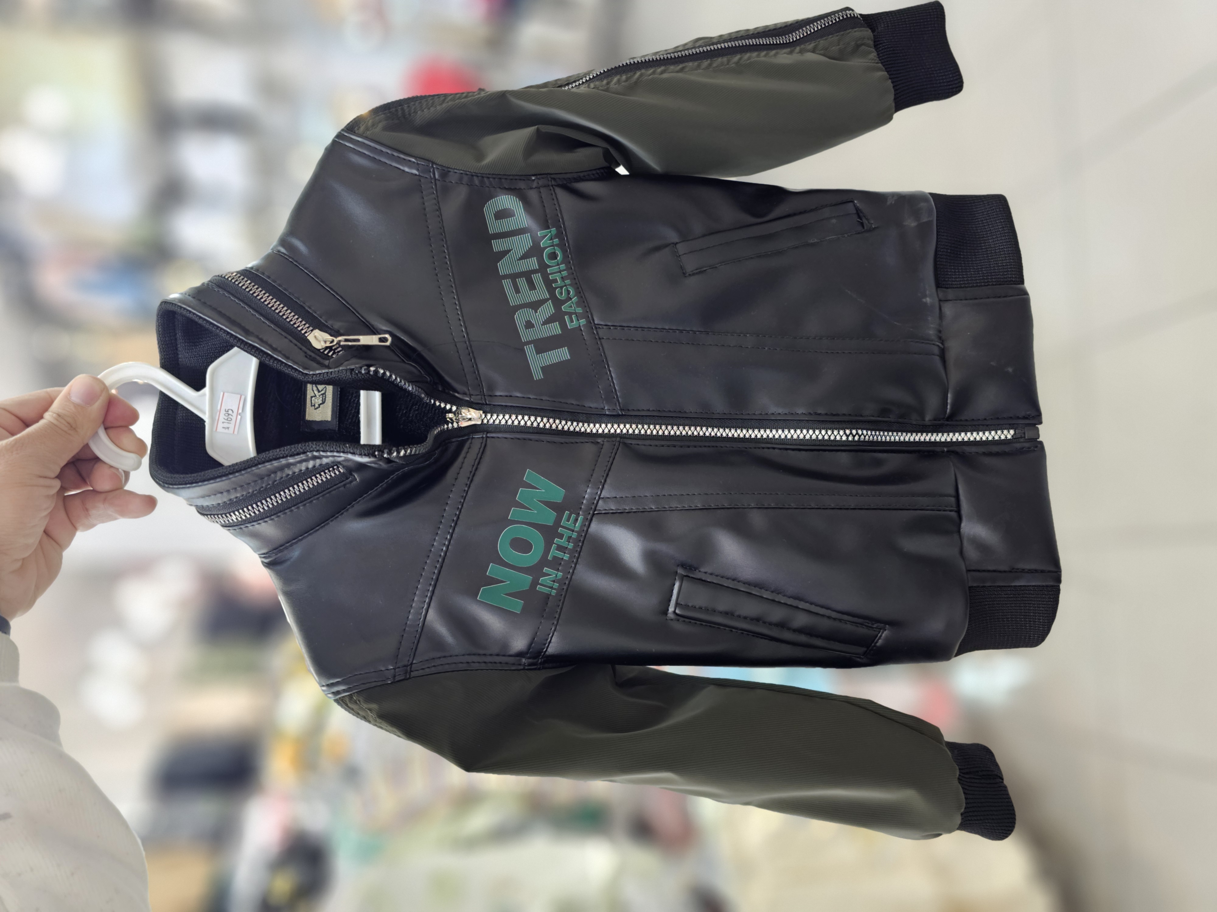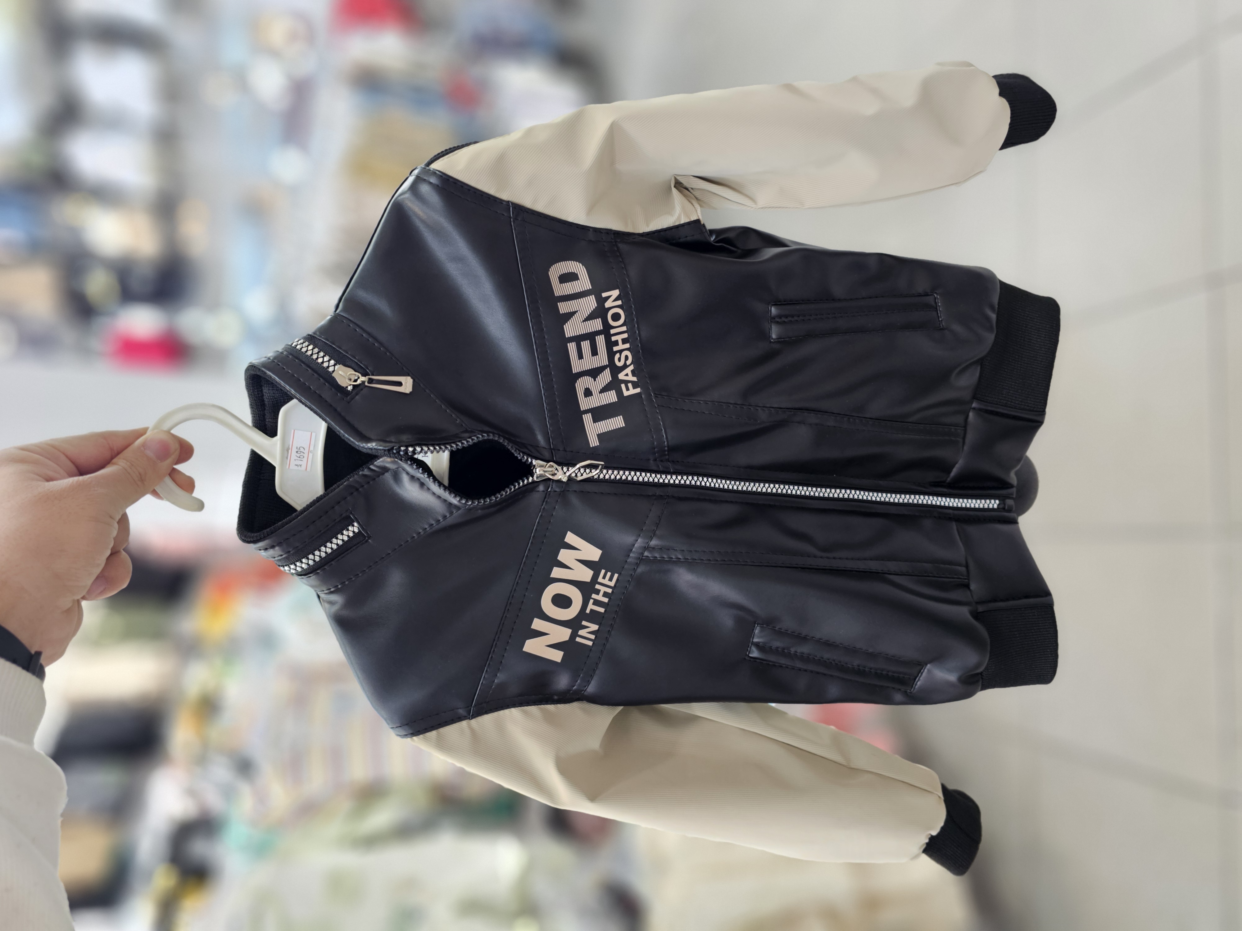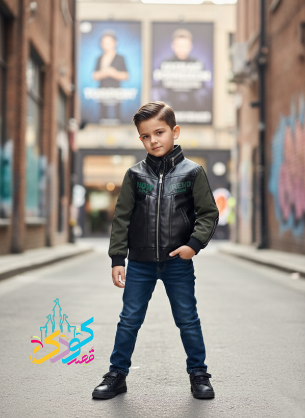 کت چرم اسپرت آستین زیپ دو رنگ سایز ۳ تا ۱۲ سال