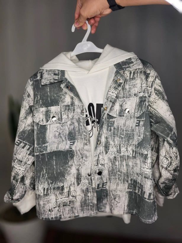 کت و هودی دو تیکه اسپرت با پارچه کتان و نخ پنبه مناسب برای کودکان ۷ تا ۱۲ سال.
