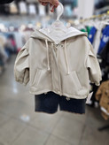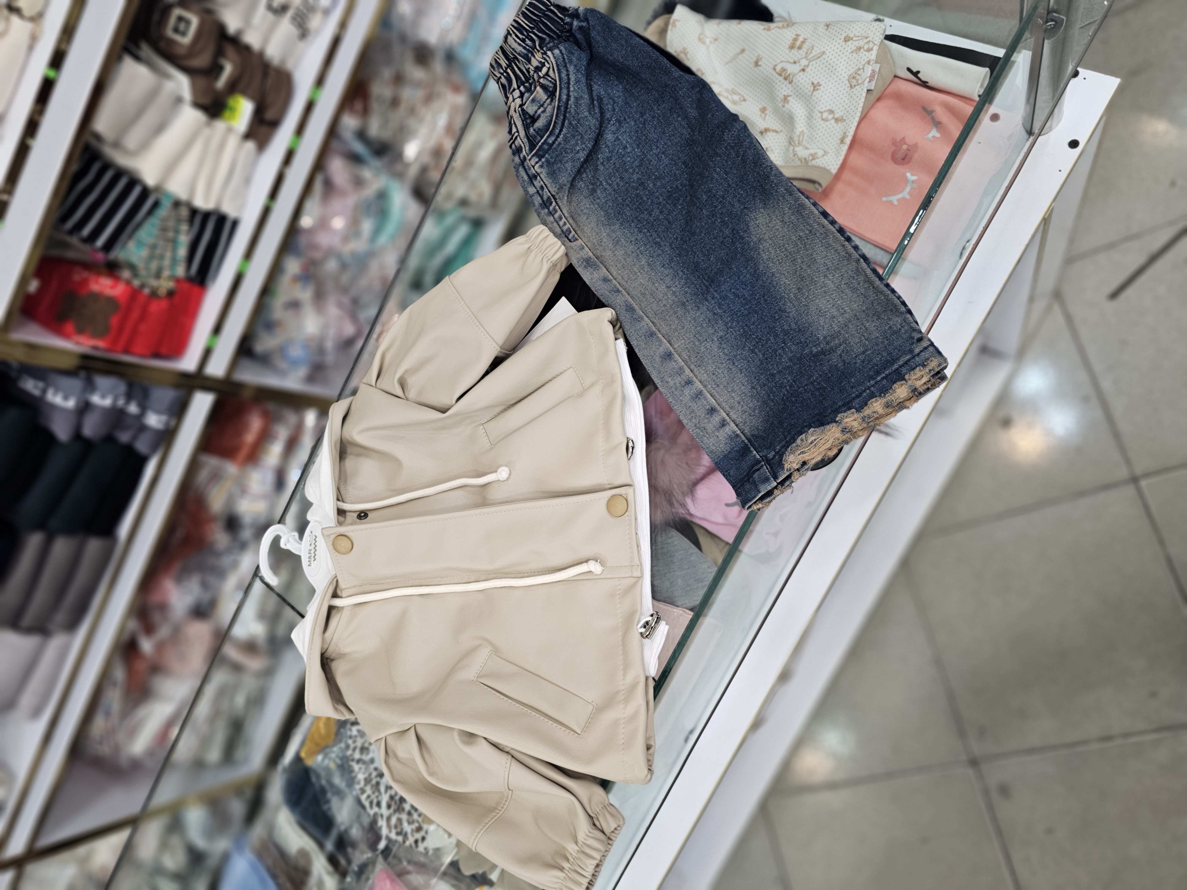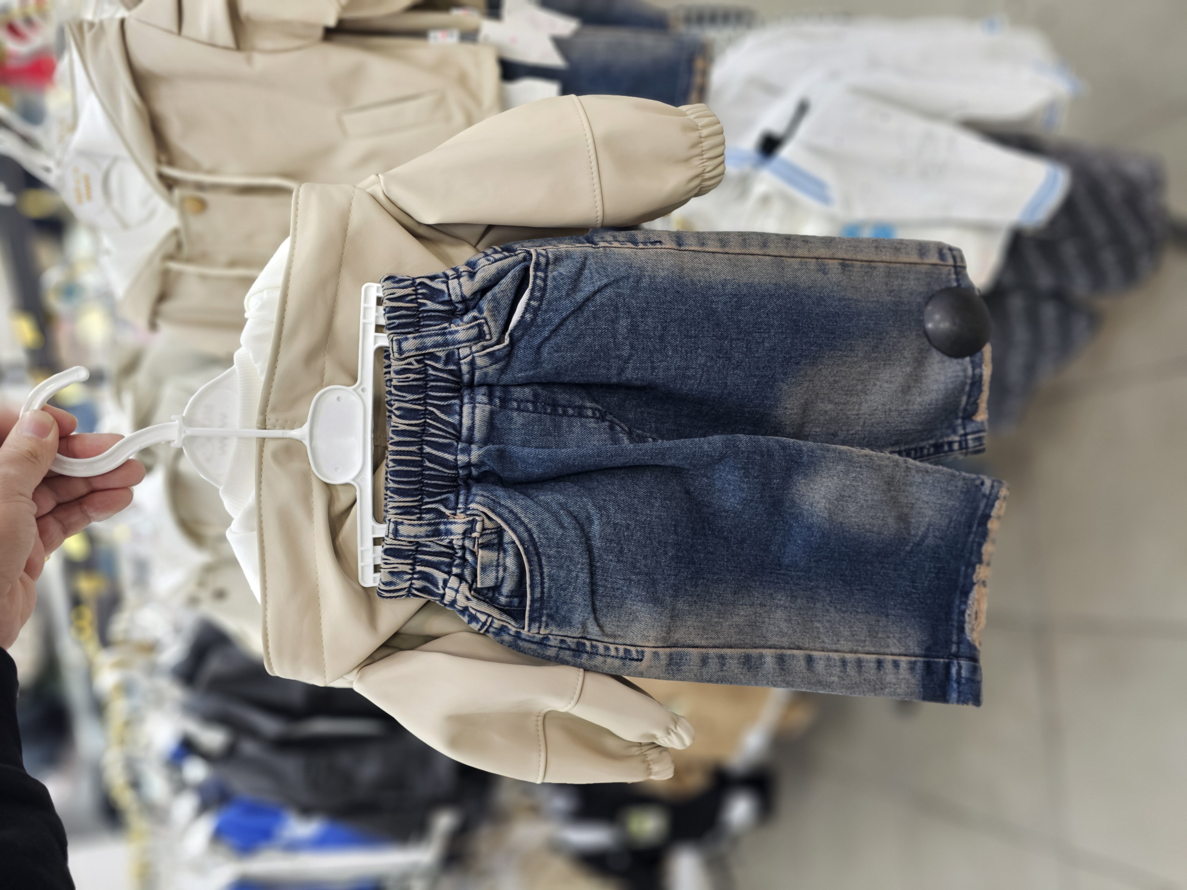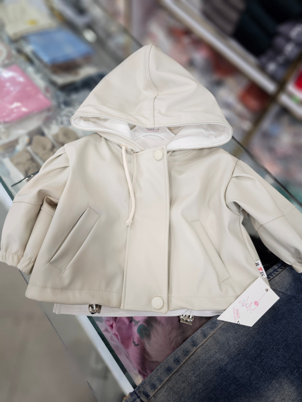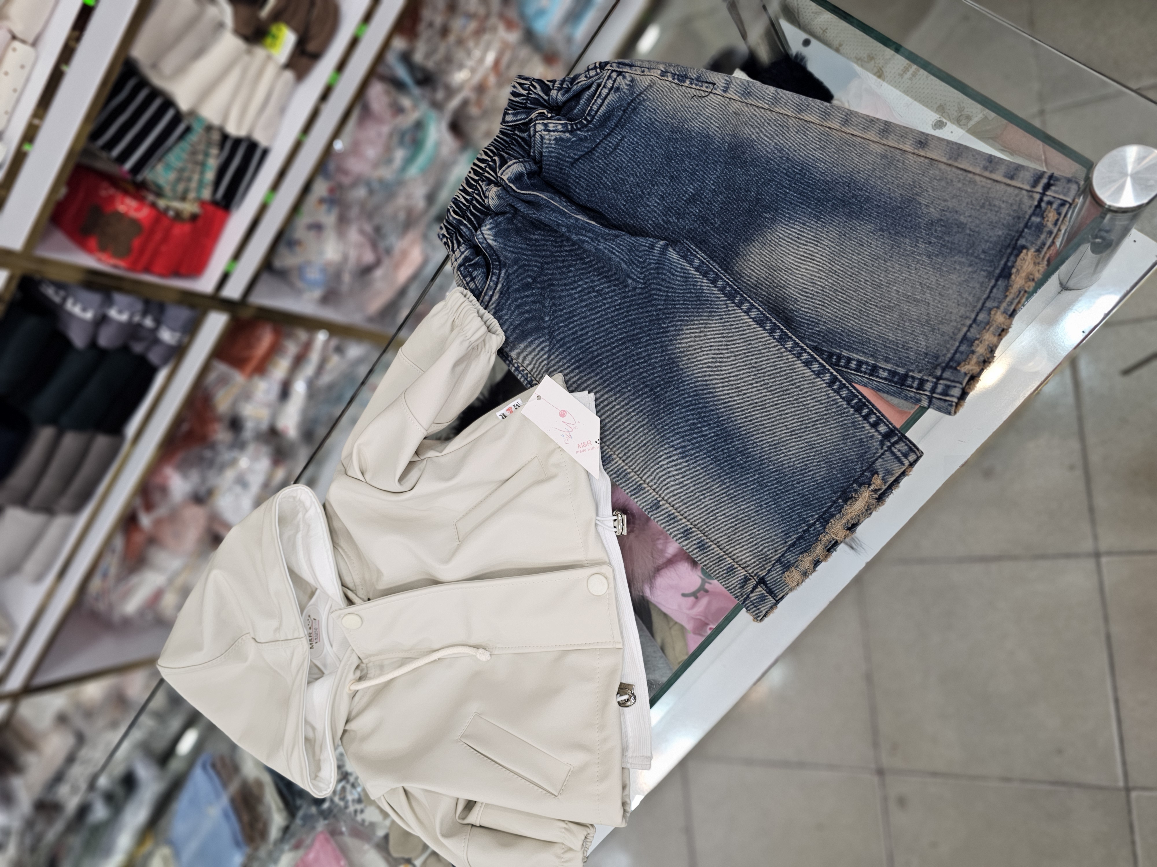 ست کت کلاه دار چرم با شلوار لی و بلوز آستین بلند پارچه ترک تضمینی مناسب ۹ ماه تا۴ سال
