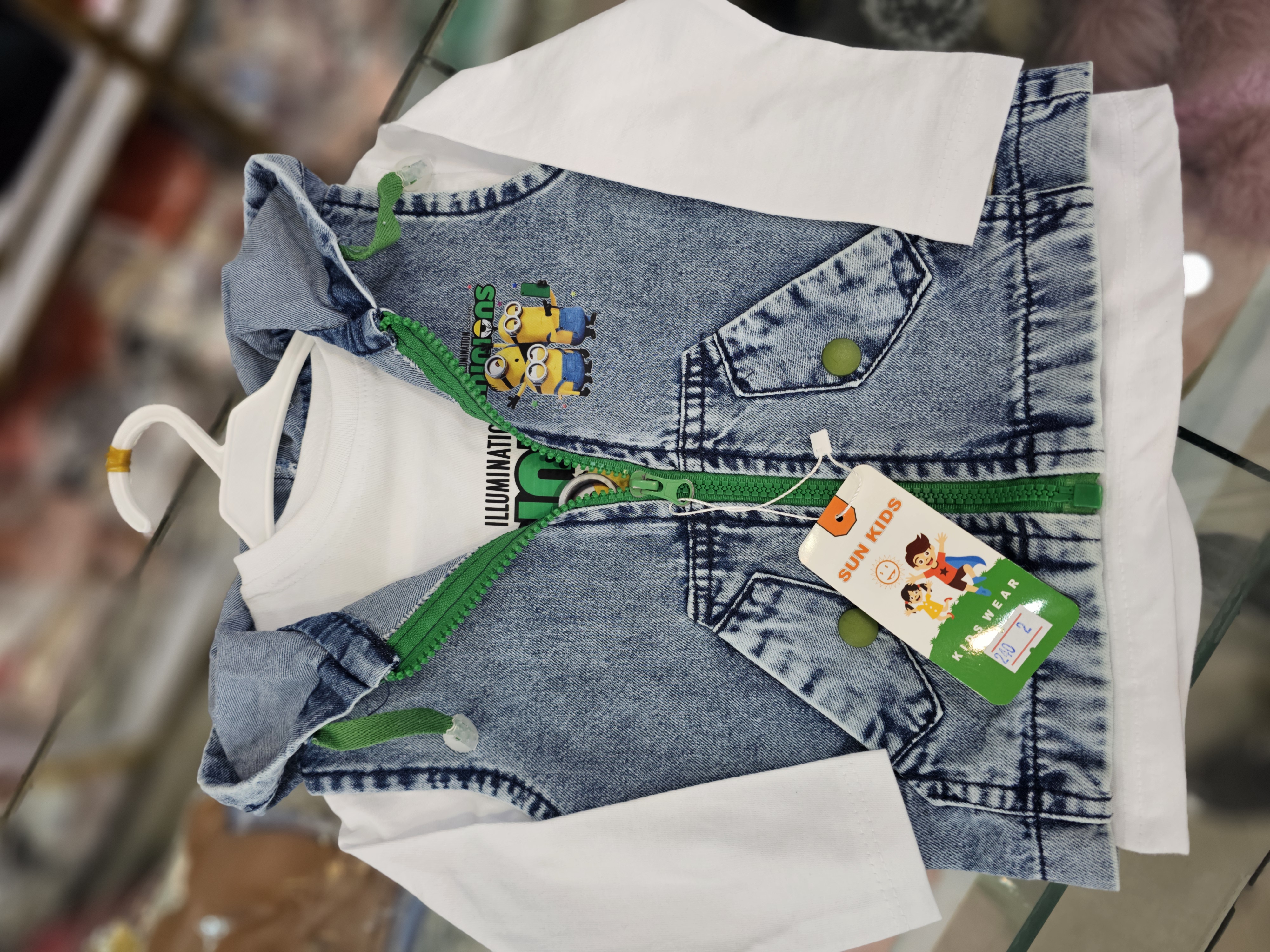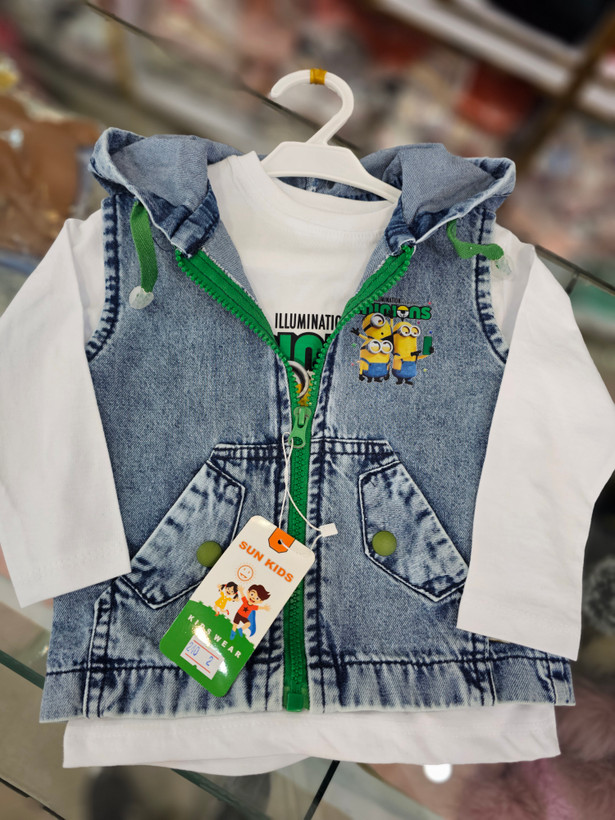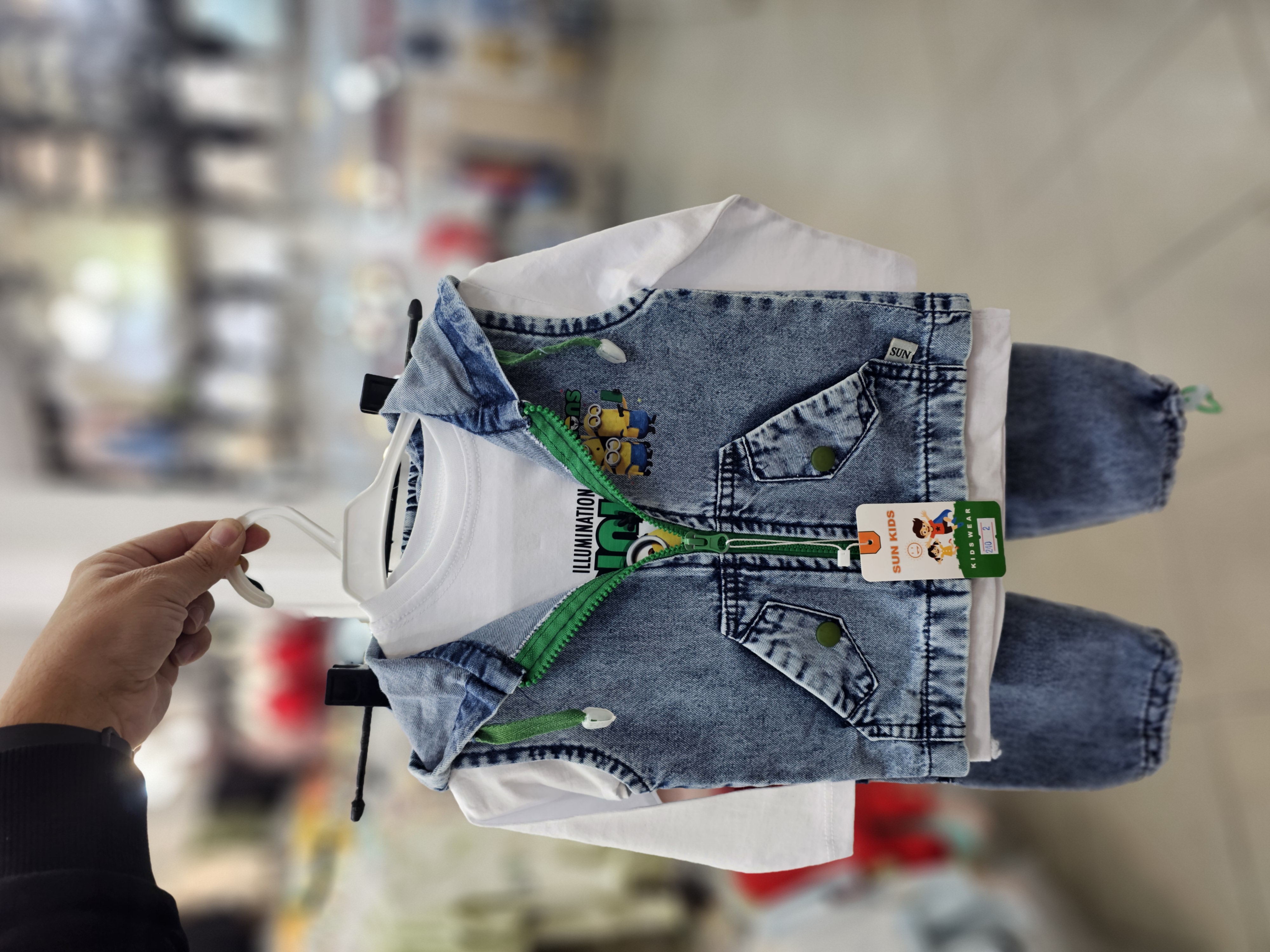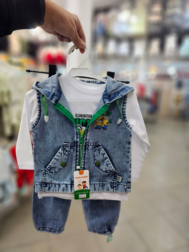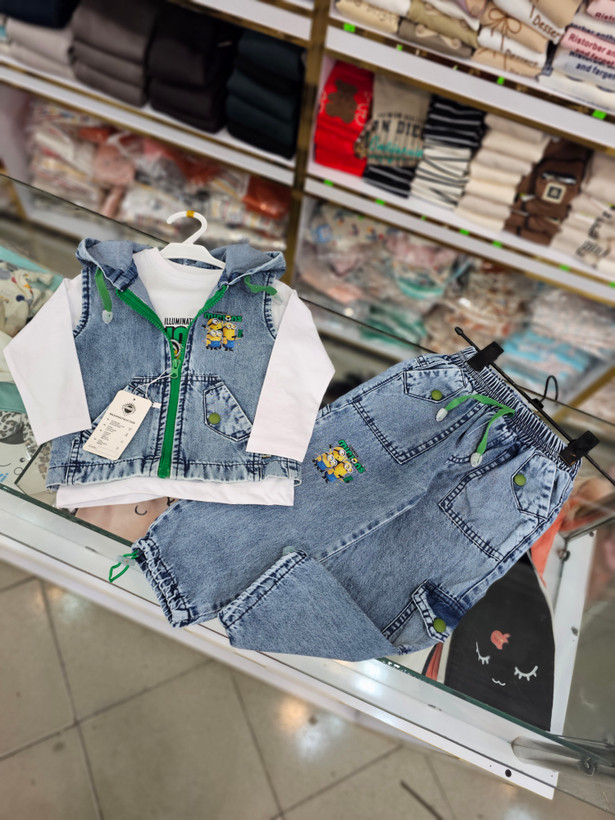 سه تیکه لی بچگانه شامل ژیله، بلوز آستین بلند پنبه ،شلوار لی مناسب ۱تا۴سال پارچه کاغذی گرم بالا با کیفیت مناسب فصل بهار همچنین شلوار ست شش جیب و پایین مچ گت تنظیمی دارد برای جمع کردن مچ شلوار