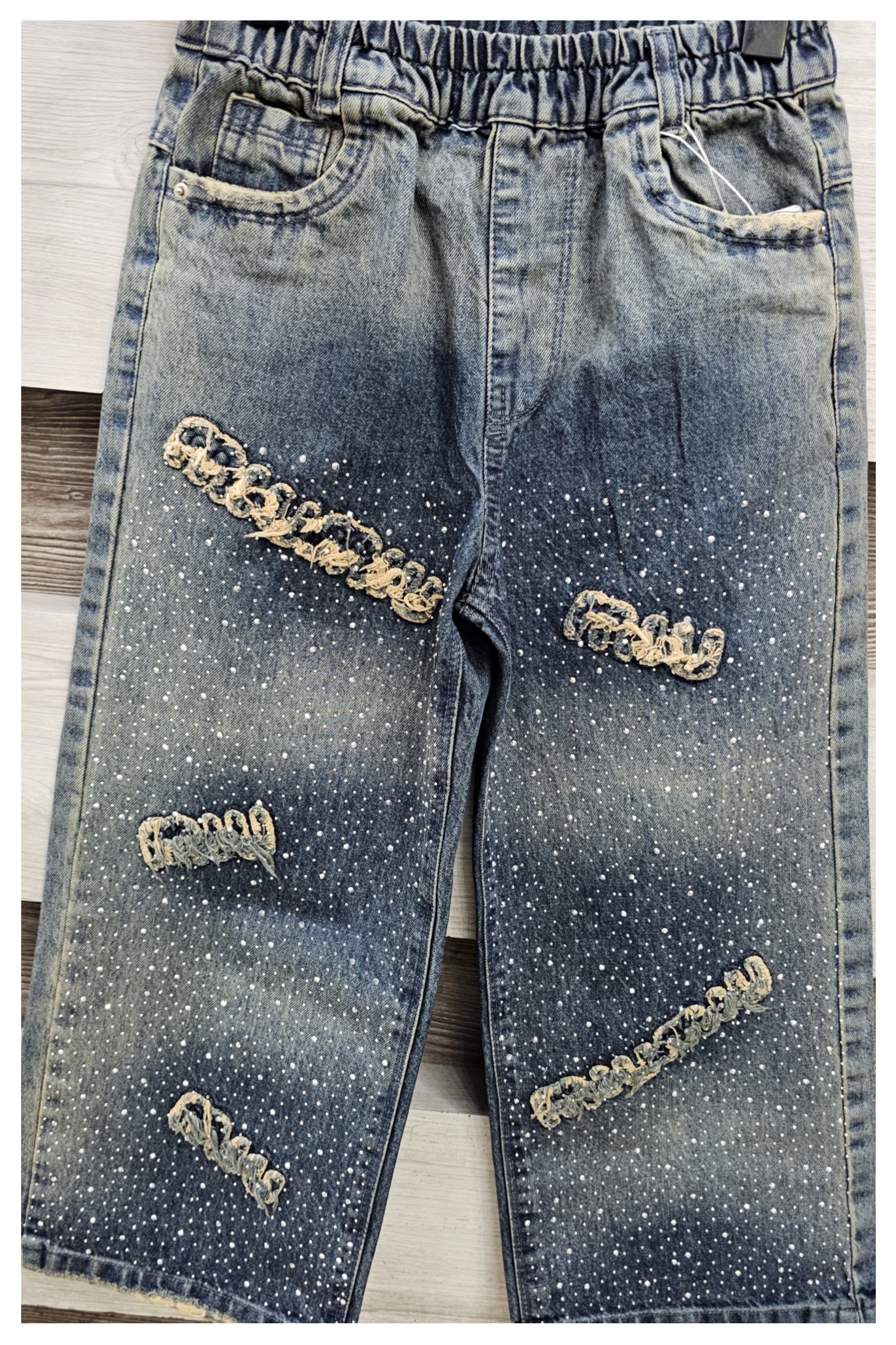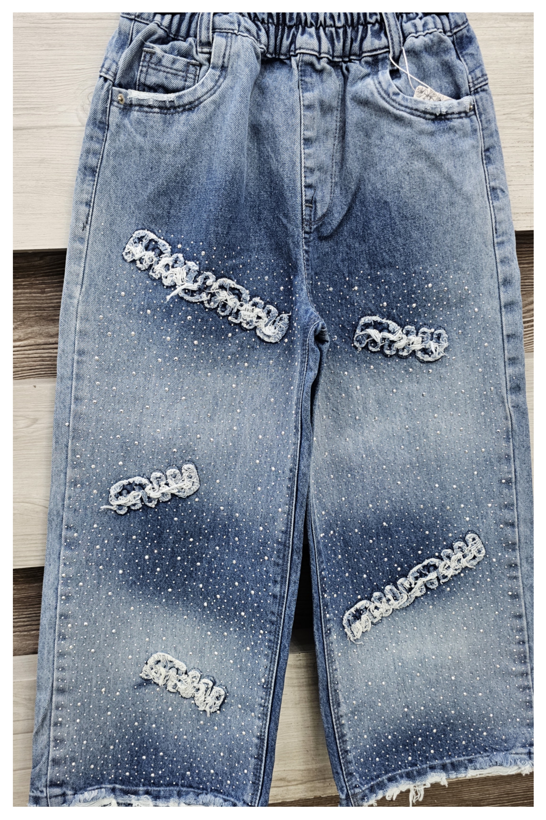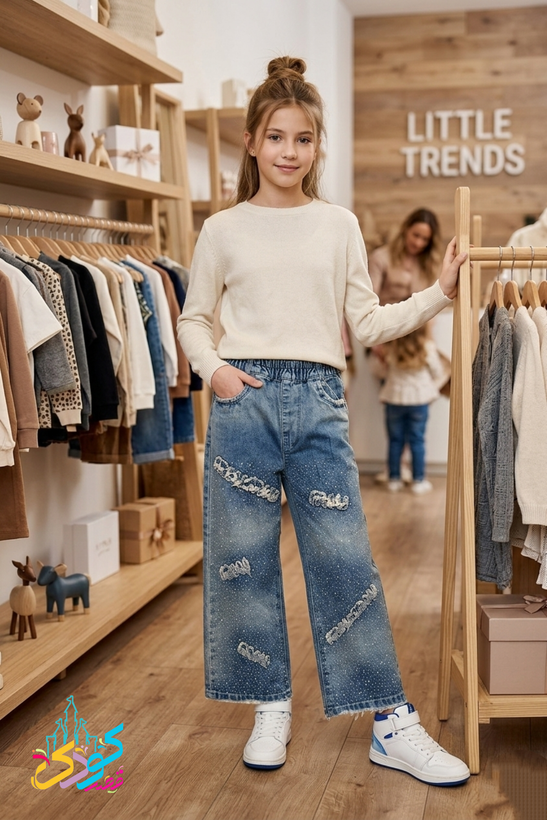 شلوار لی بگ نگینی مدل miu miu سایز ۷۵ تا۱۱۰ مناسب ۷تا۱۶سال ،جنس شلوار پارچه پر نگینی با کیفیت