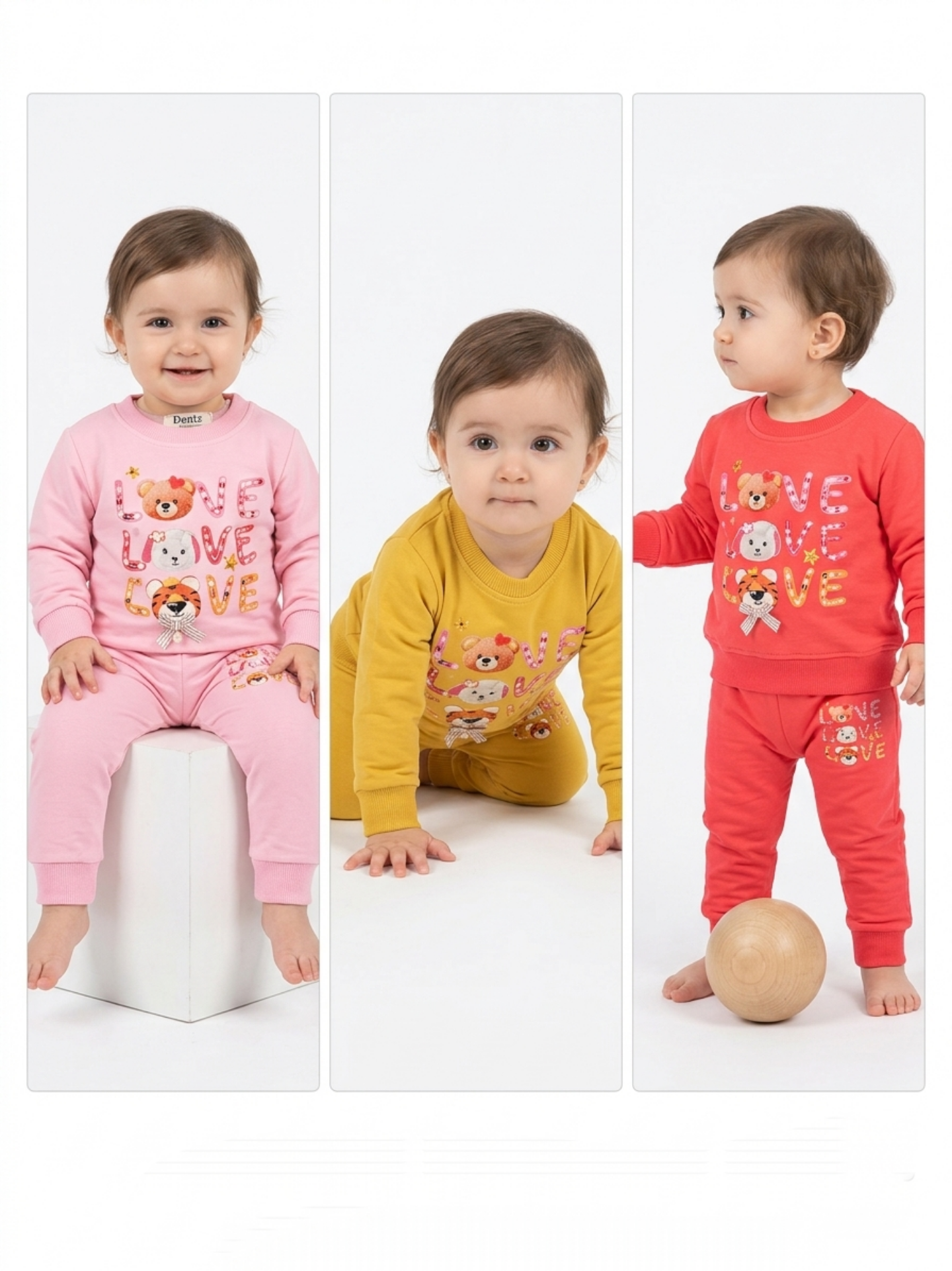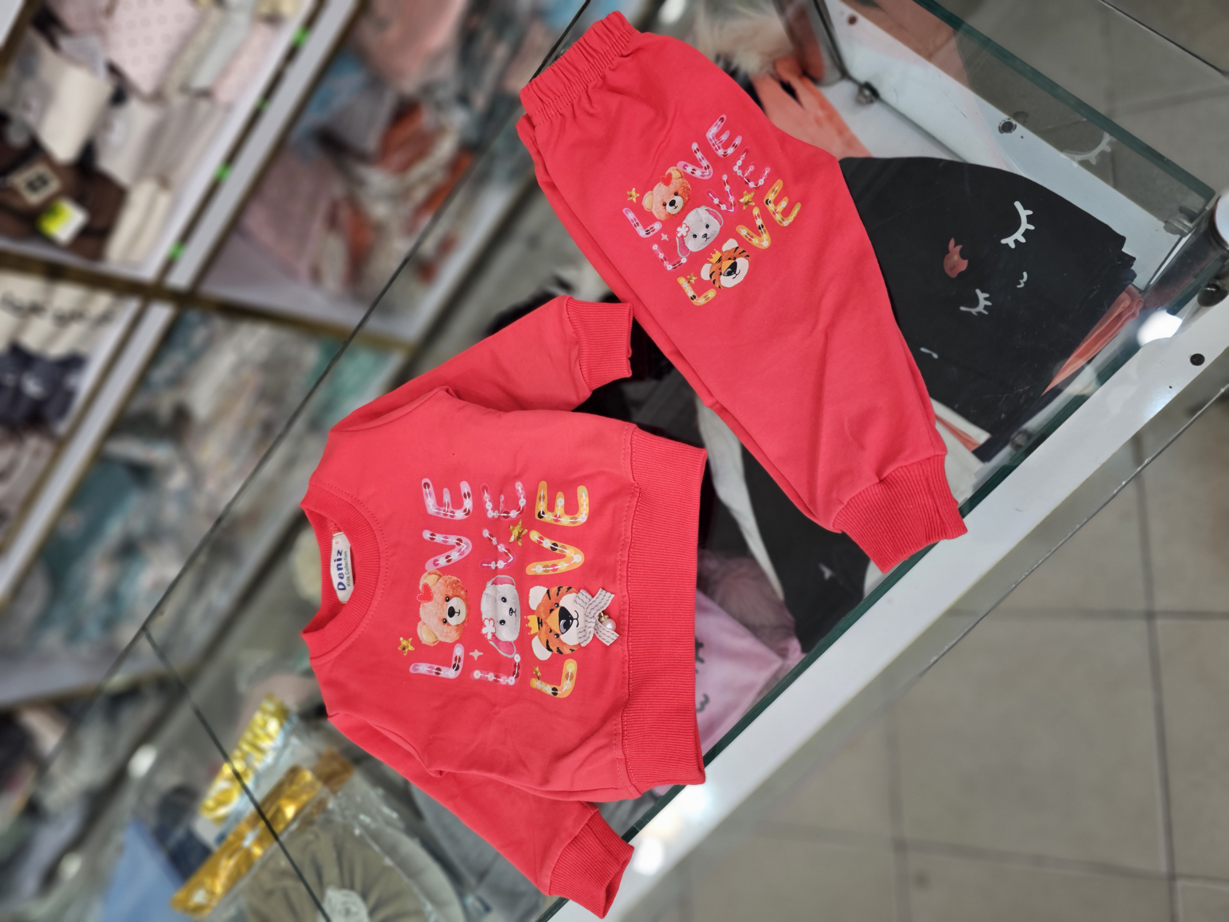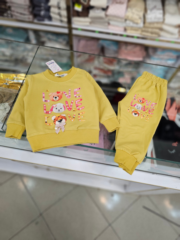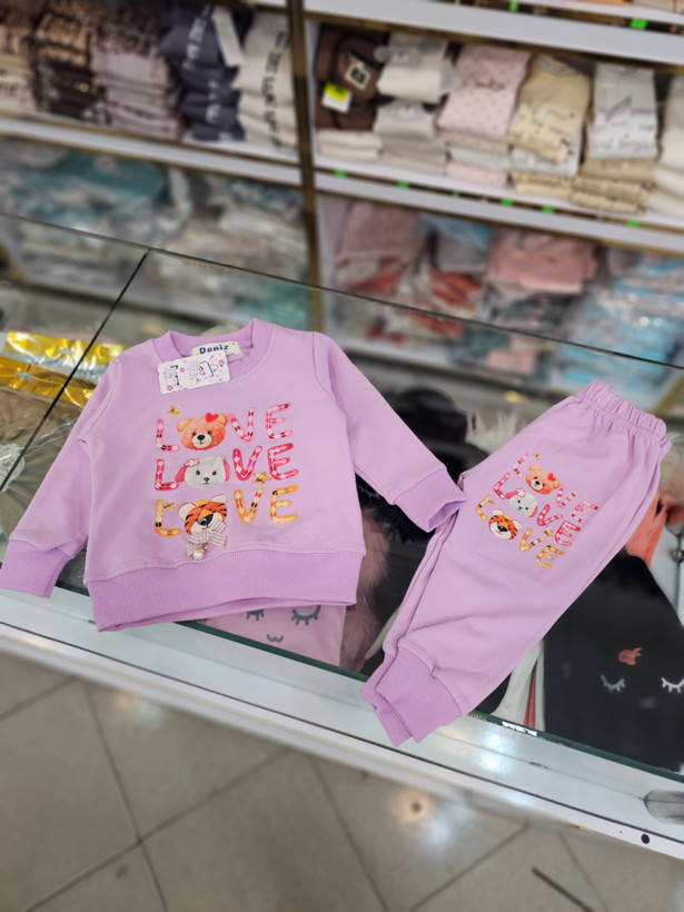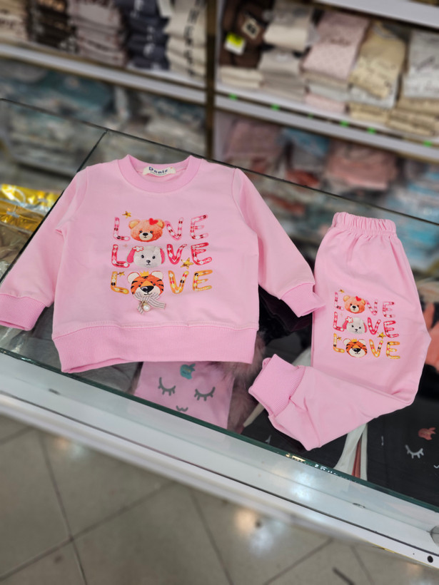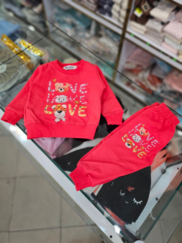 بلوز شلوار نخ پنبه طرح love با خرس مناسب ۶تا۲۴ماه
