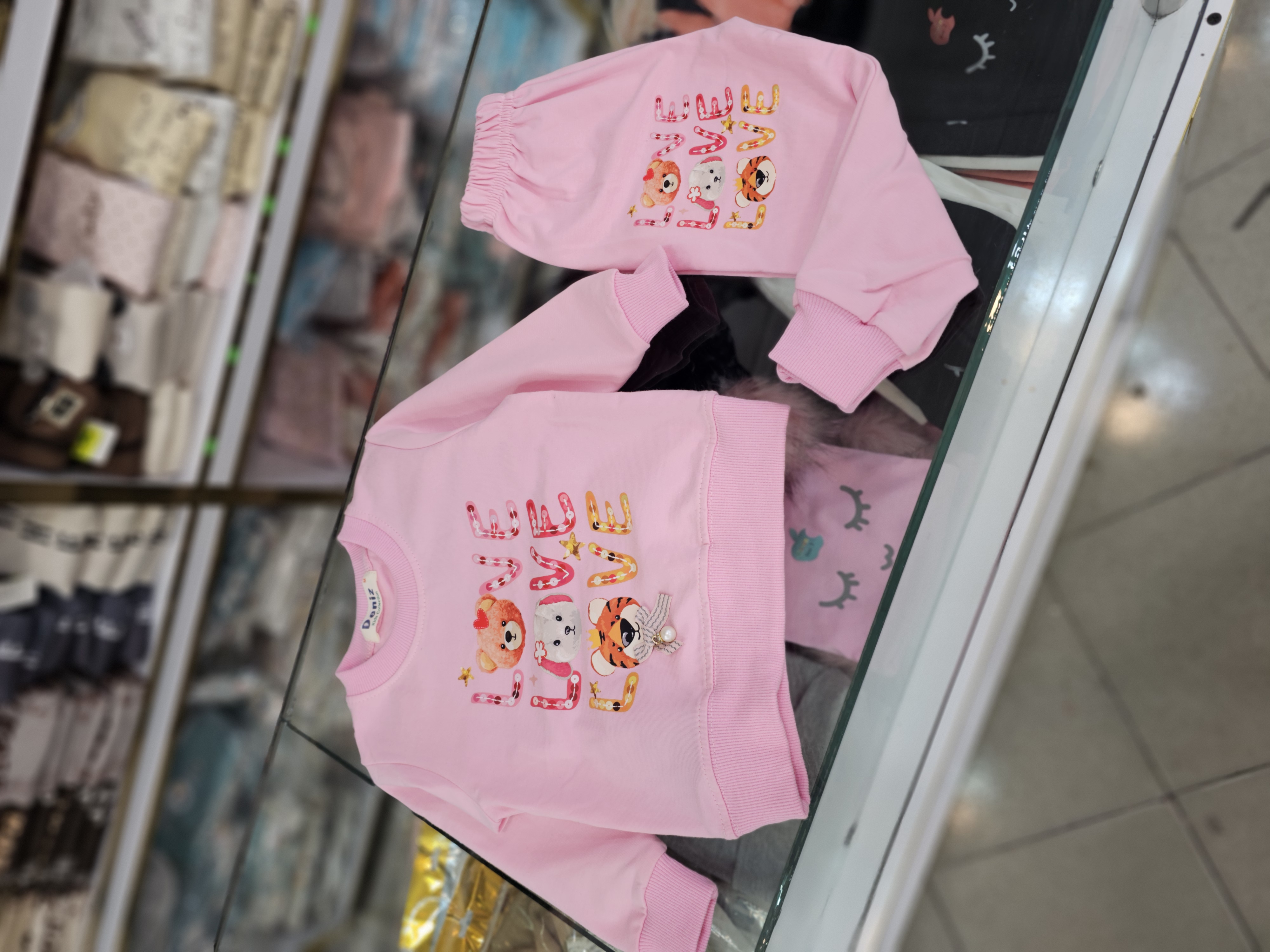 سایز۳۵ : مناسب ۱۲تا ۲۴ماه ،قد بلوز ۳۳،عرض ۲۹ ،قد آستین از سرشانه تا مچ ۲۷،قد شلوار ۴۳ سانت