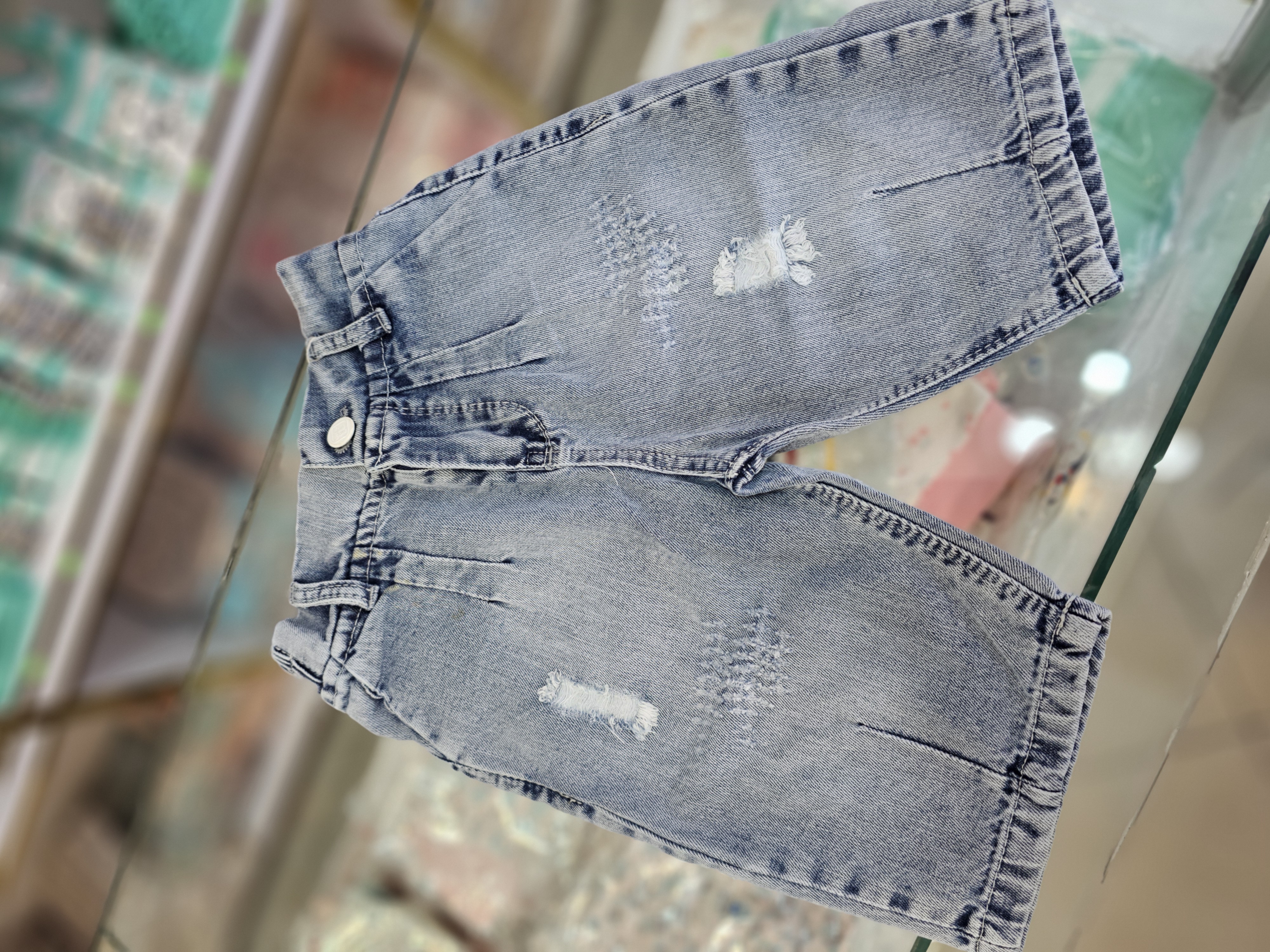 شلوارک لی کاغذی مدل مام ساده مناسب ۳ تا ۱۲ سال کمر پشت کش و جلو دکمه و زیپ