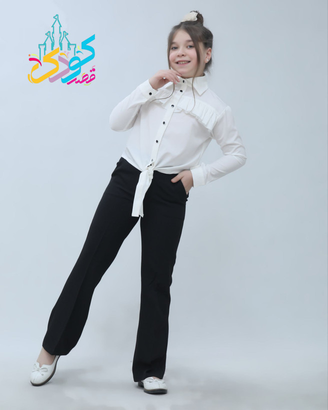 شومیز کراپ جلو گره ای جنس پارچه الیزه ،مناسب ۵تا۱۴سال