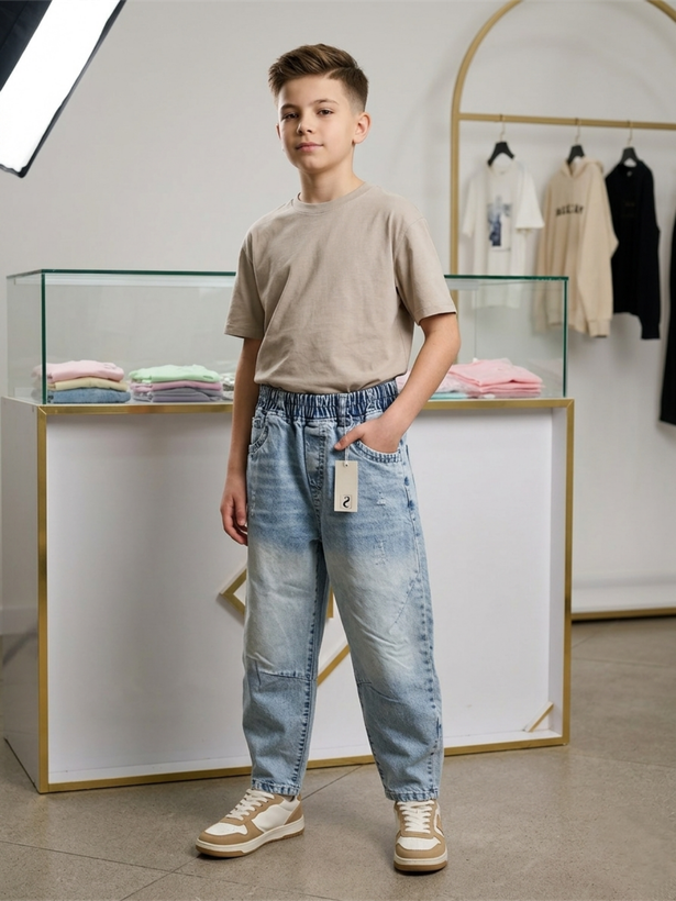 شلوار لی بالونی اسپرت تک رنگ آبی روشن سایز ۸۰ تا ۱۰۵ مناسب ۸ تا۱۴ سال