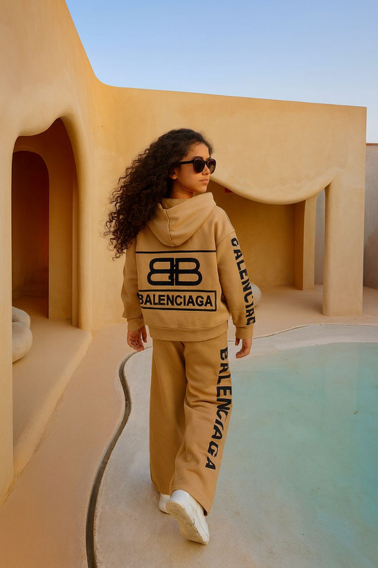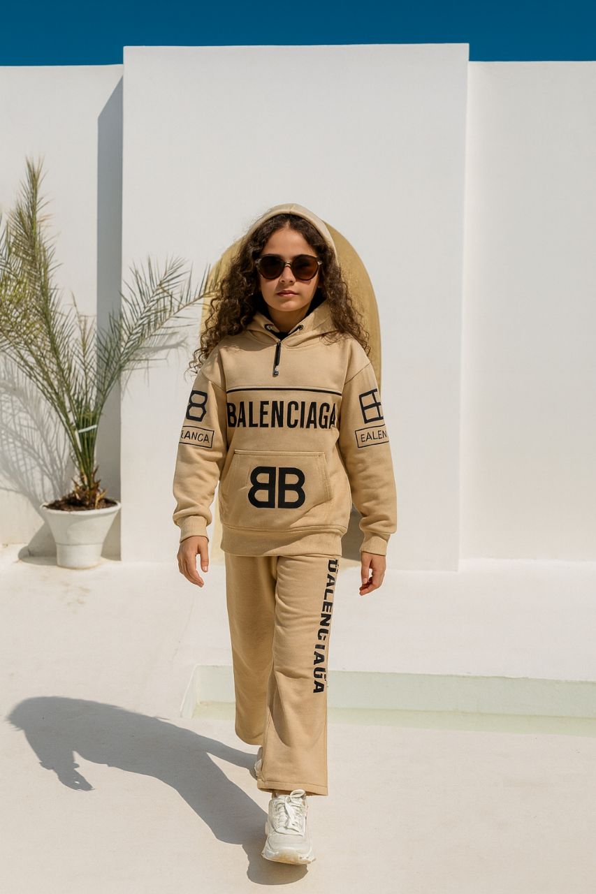 هودی شلوار اسپرت بالانسیگا سایزبندی ۷۰ مناسب ۵ تا ۱۵ سال تک رنگ مشکی با چاپ کرم