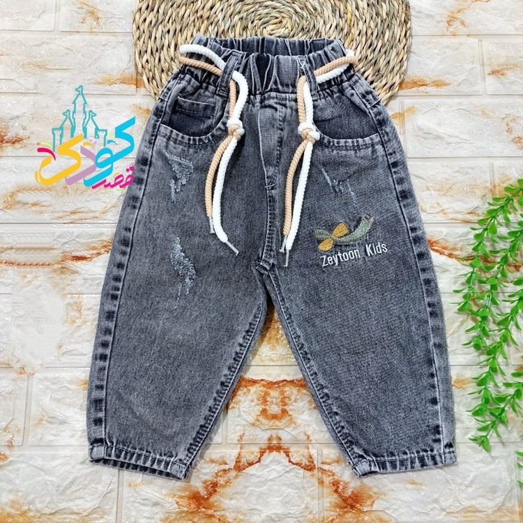 شلوار مام دخترانه جنس جین پنبه بدون کش گ زغالی و آبی