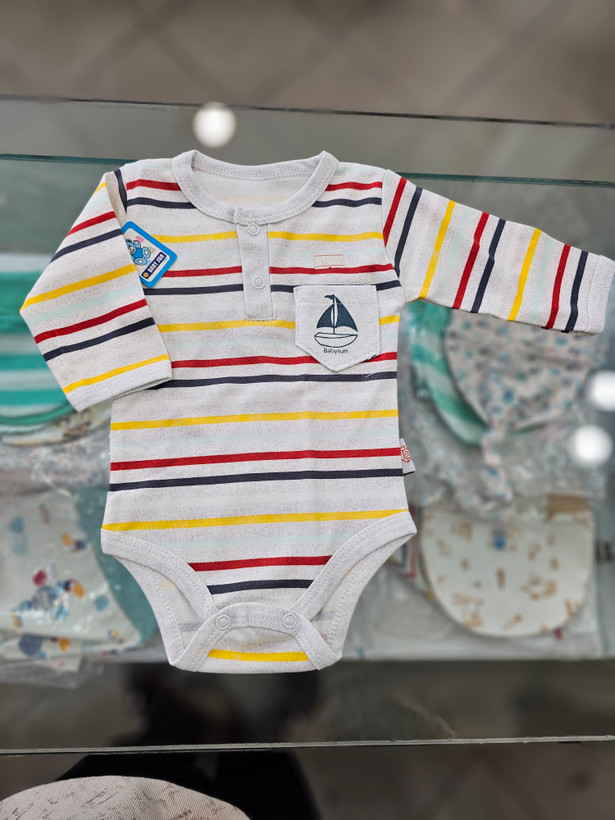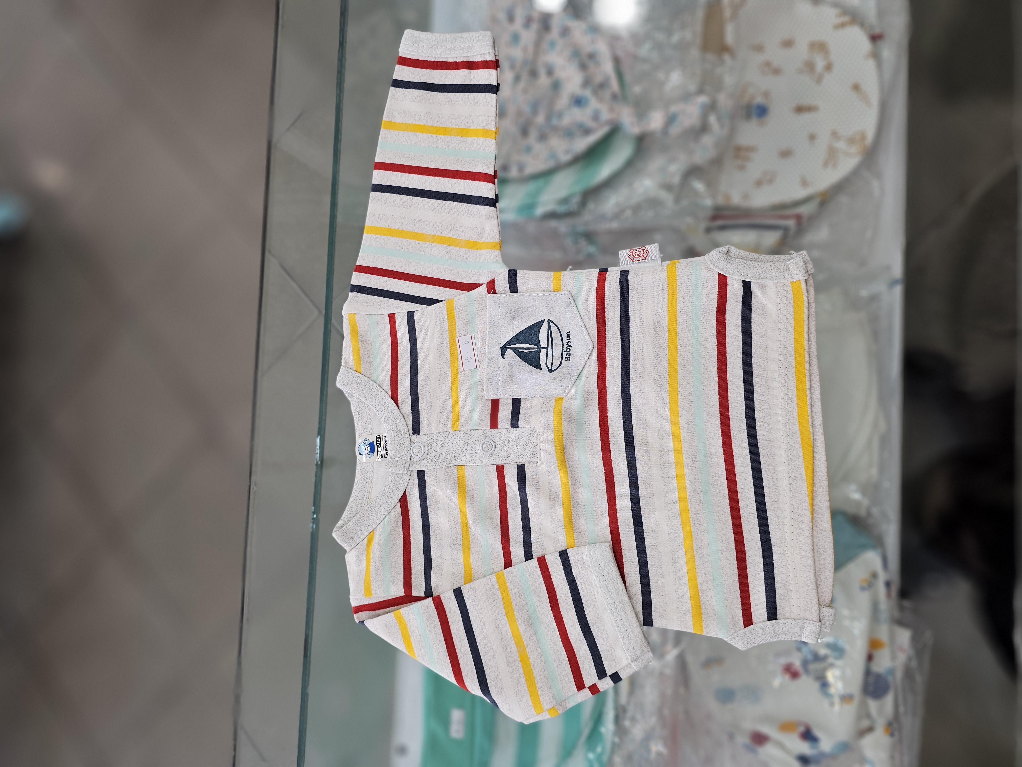 سرویس باز نوزادی راه راه ملوانی چند تیکه نوزاد تا ۱۲ ماه تمام پنبه
