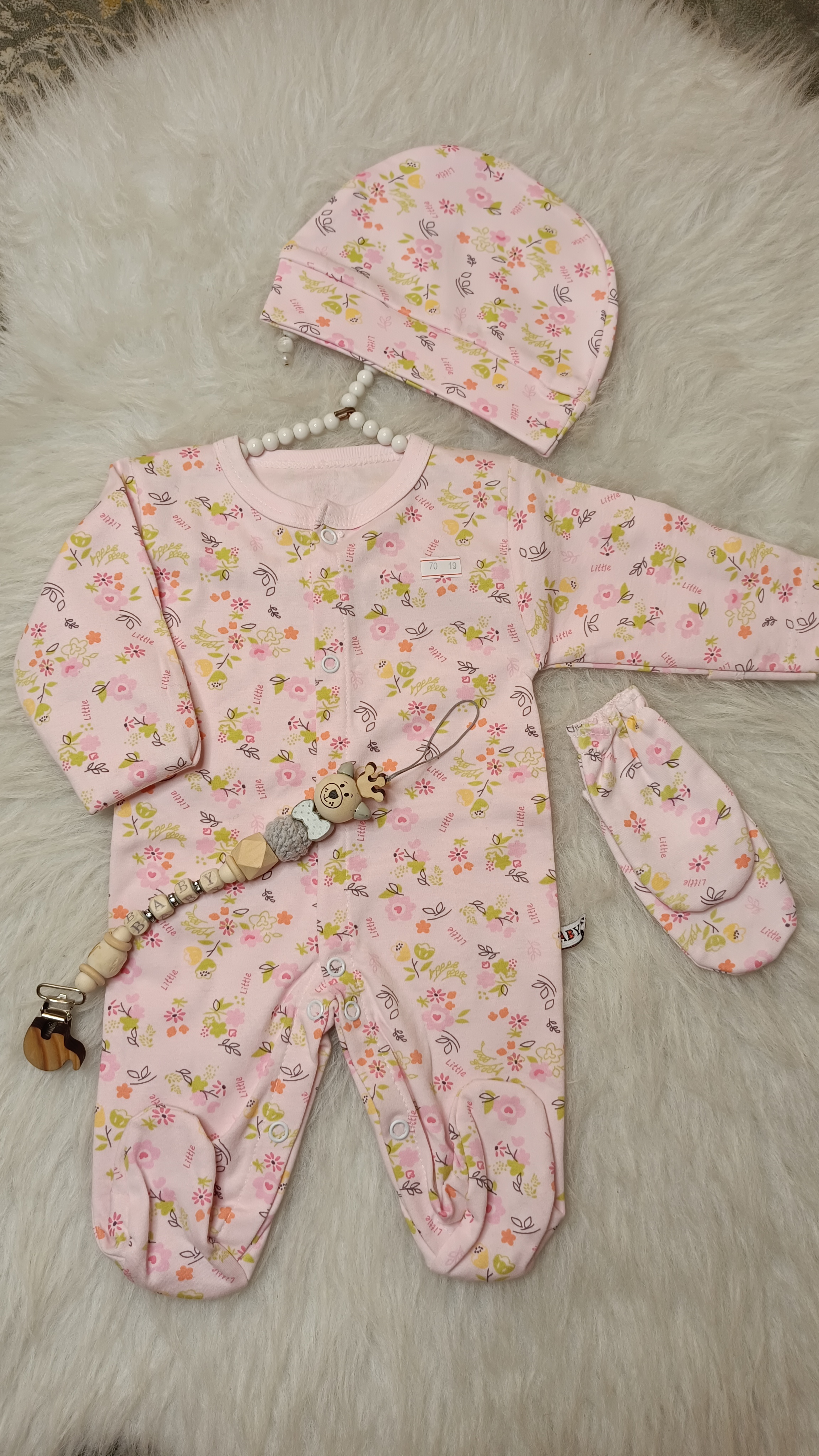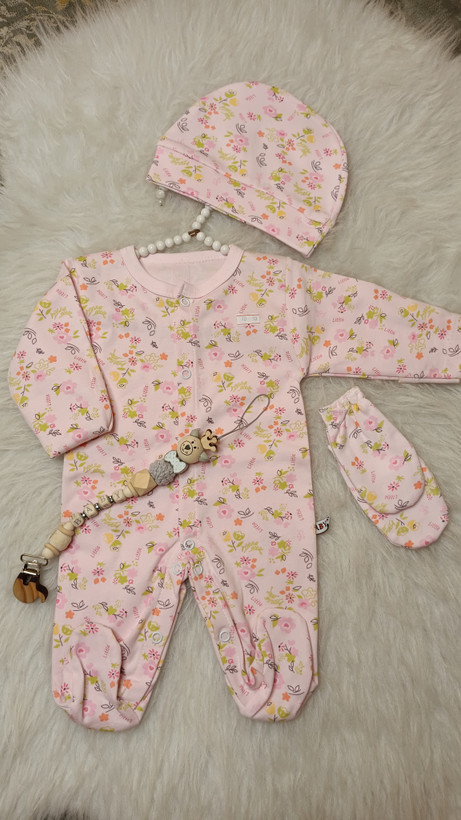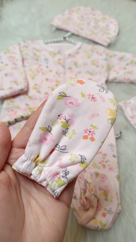 سرویس باز نوزدای چند تیکه مدل شکوفه ۰ تا ۱۲ ماه ۱۰۰درصد پنبه
