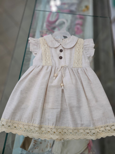 پیراهن لنین کتان یقه ب ب دخترانه پارچه ترک مناسب ۳ ماه تا ۲۴ ماه