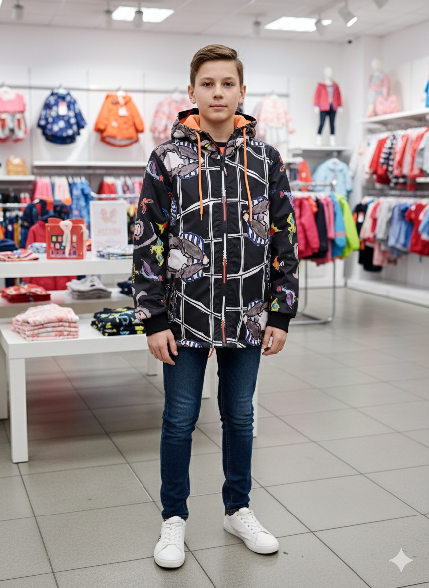 بارانی پسرانه طرح میمون مناسب ۱۲ تا ۱۴ سال